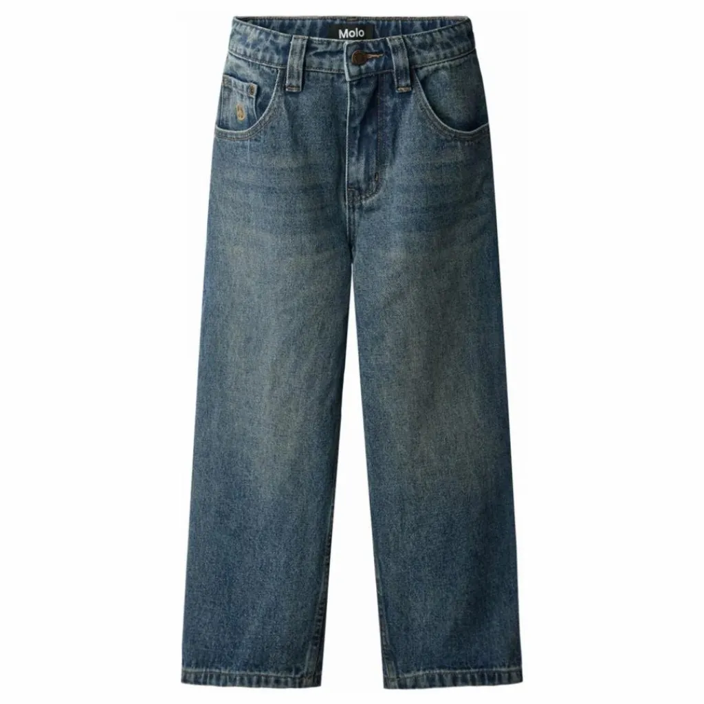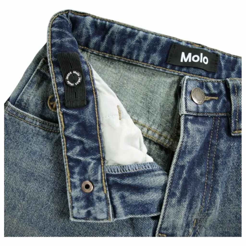 - Ce jean bleu surdimensionné de Molo a cinq poches, des passants de ceinture et un écusson de paix près d’une des poches. La taille peut être ajustée à l’aide d’un élastique interne pour un ajustement optimal à tous les enfants. Les tailles 92-134 ont un bouton pression, tandis que les tailles 140-176 ont un bouton de jean normal. Il est recommandé de choisir une taille plus petite pour une coupe moins ample, surtout si l’enfant est entre deux tailles.