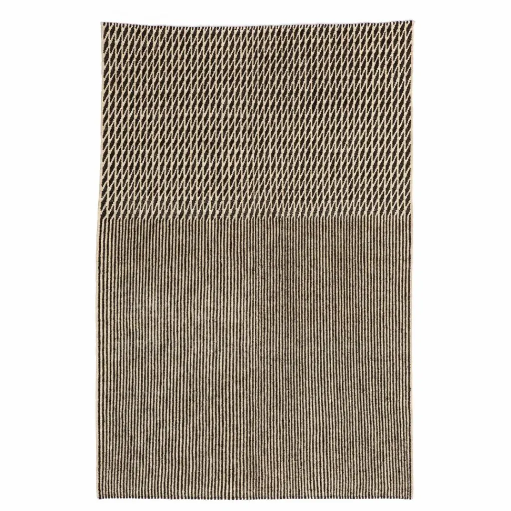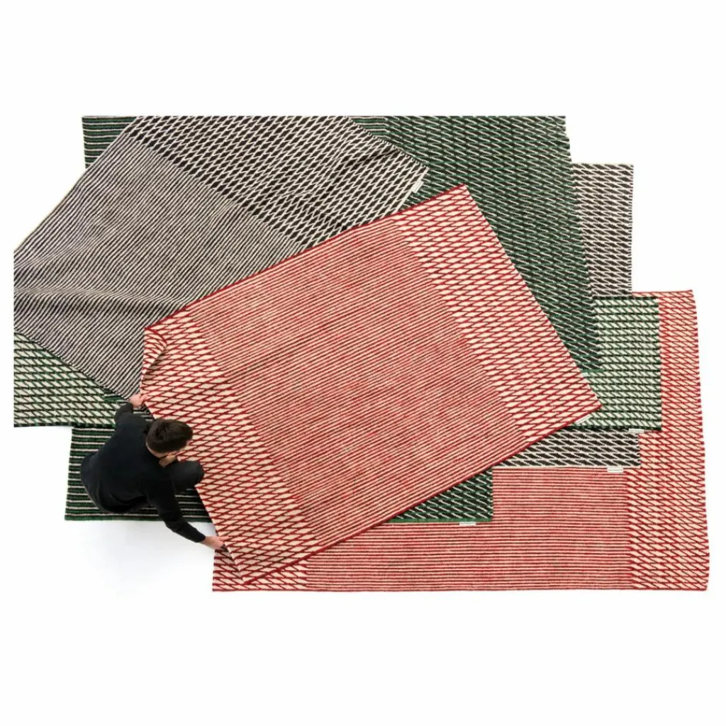 Les formes géométriques et la répétition sont les caractéristiques des frères Bouroullec. Leur maîtrise, leur minutie et leur capacité inépuisable à aller toujours plus loin les ont amenés à travailler sur Blur, une collection proposant deux lectures différentes. Lorsque vous observez le tapis de loin, vous remarquerez une surface indéfinie et non focalisée qui donne son nom à la collection. Néanmoins, à l’approche du tapis, des lignes et des losanges rythmiques de proportions différentes sont révélés, dans le plus pur style cinétique. Cet effet flou a été obtenu en inversant le sens dans lequel les kilims sont traditionnellement tissés, ce qui rend le tissage beaucoup plus complexe. Ce changement de tissage rend les lignes floues, mélangeant deux couleurs de manière inégale, créant un tapis vieilli rappelant le passé.
