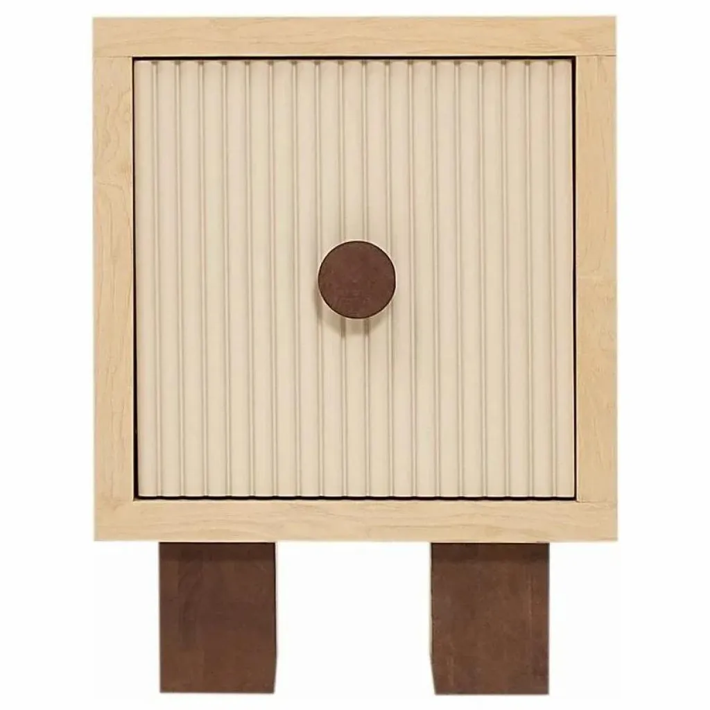 - Cette table de nuit, issue de la collaboration entre Nobodinoz et le Studio Heju, séduit par ses lignes épurées et ses finitions soignées. Une pièce intemporelle qui mélange subtilement le bois clair et bois teinté foncé et joue avec la lumière pour créer une atmosphère apaisante. Sa porte dotée de fins godrons texturés