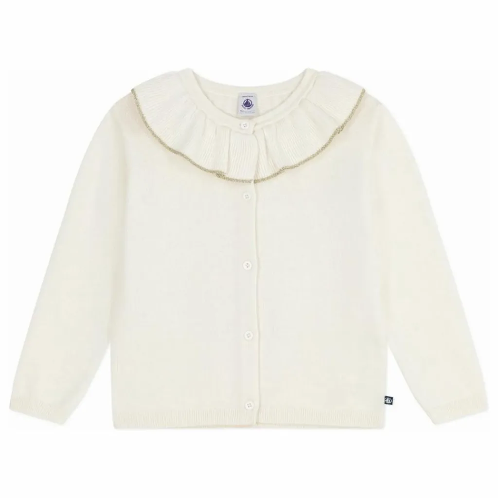 - Col colerette avec une finition en fil métallisé. Ouverture boutonnée sur le devant.