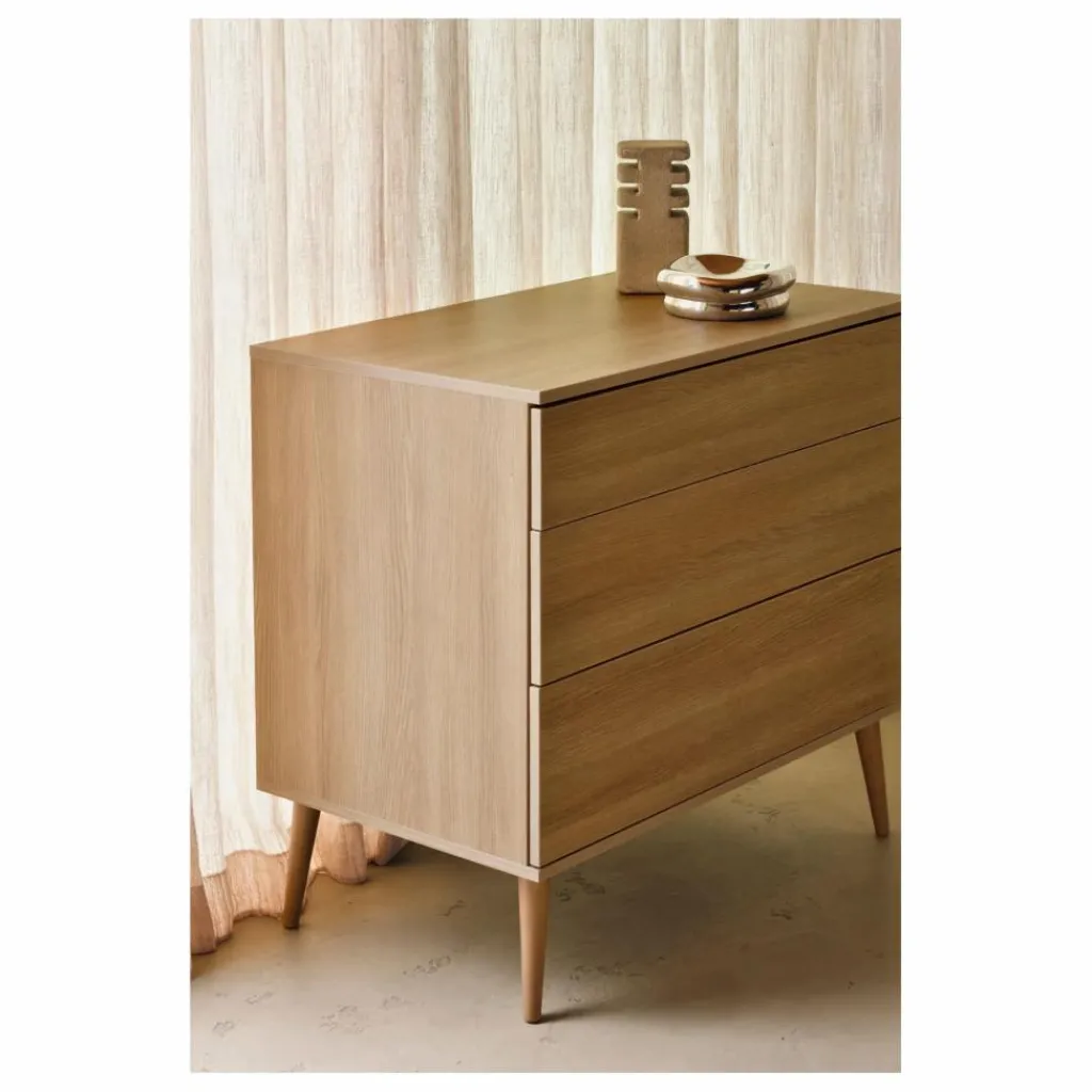- La commode Flow, synonyme d’élégance intemporelle, apporte une touche de raffinement dans la chambre de votre enfant tout en offrant un vaste espace de rangement pour les essentiels de bébé. Ses tiroirs s’ouvrent aisément grâce à un système de poussée, sans nécessiter de poignées. Cette commode, pensée pour allier esthétique et fonctionnalité, peut être équipée d’une extension (ref. 54F02-03001E) pour se transformer en table à langer, augmentant sa hauteur de 10 cm pour plus de confort. La surface de change, de 50×70 cm, est spacieuse. Fabriquée en bois de haute qualité certifié FSC, avec des pieds en hêtre massif et une structure en aggloméré mélaminé, elle mesure 96x58x92H cm, alliant luxe et praticité pour les soins de bébé.