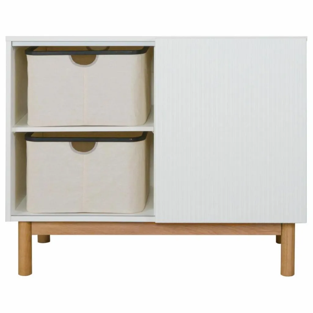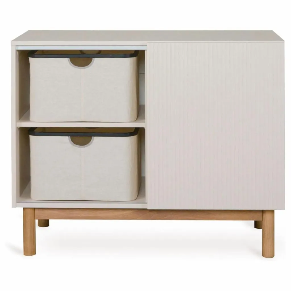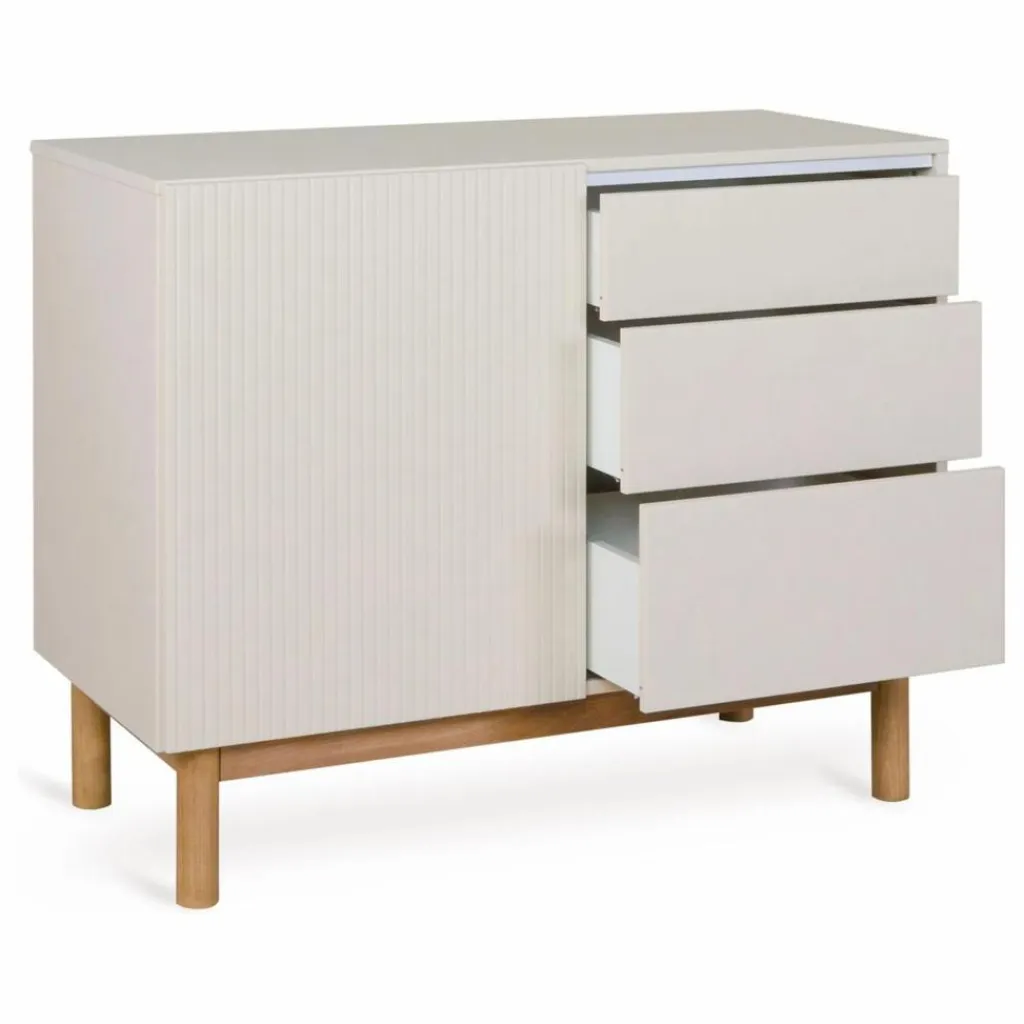 Cette jolie commode au design sobre et épurée, possède une porte coulissante avec des poignets invisibles.
