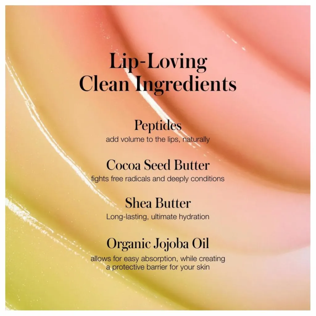 - Peptides : Ajoute un volume subtil aux lèvres, naturellement. Beurre de graines de cacao : Riche en antioxydants et en acides gras, le beurre de cacao est un hydratant naturel et nourrissant qui combat les radicaux libres et soigne en profondeur.