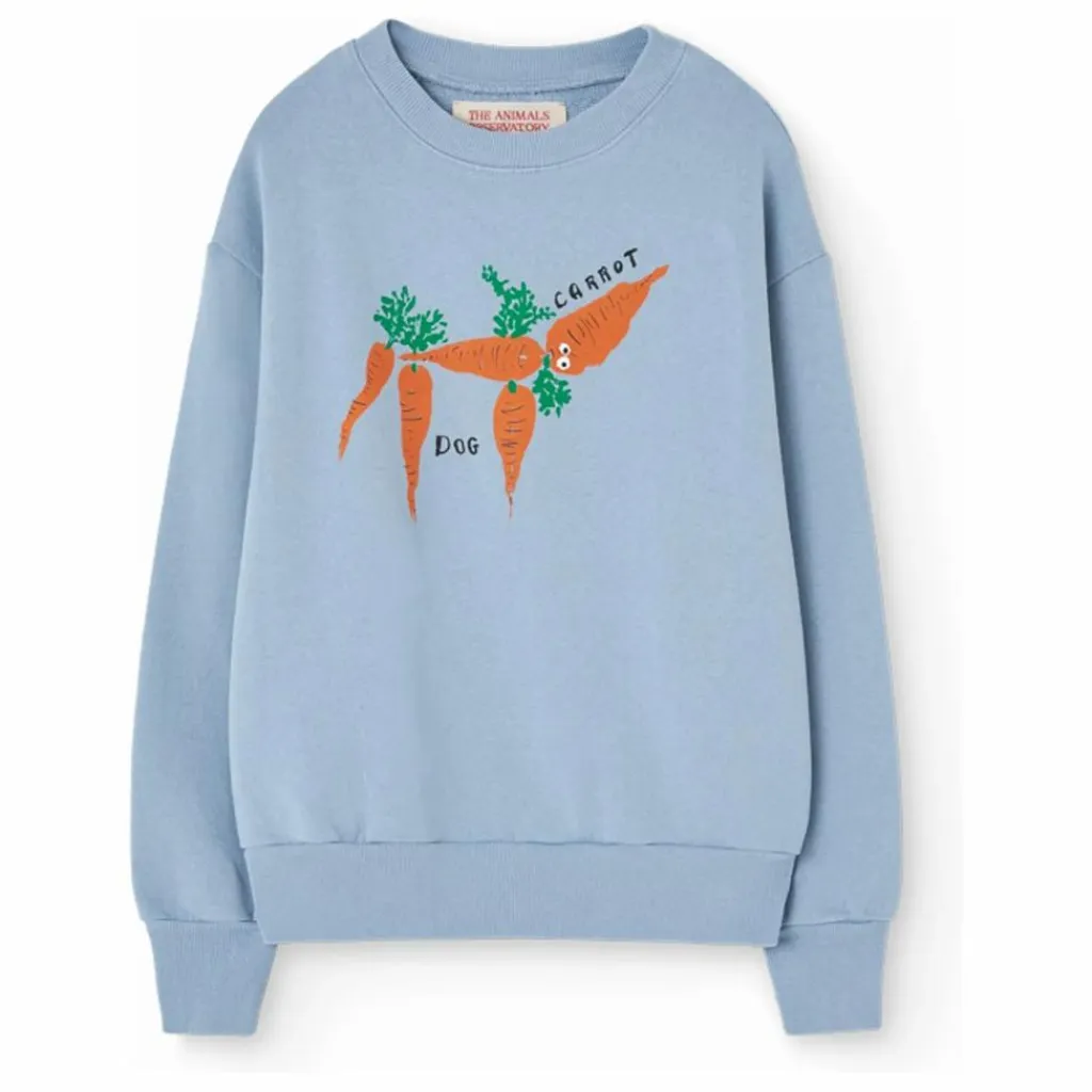 - Sur ce sweat en polaire bleu-gris non brossé pour enfants, les carottes se transforment en un chien unique. Une création ludique de Crazy Farm par The Animals Observatory, qui réinvente la ferme avec humour et fraîcheur.