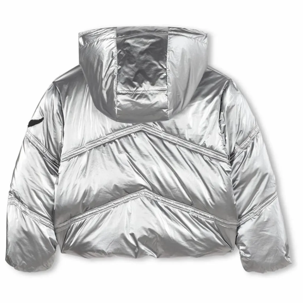 - Doudoune imperméable avec capuche détachable, fermeture zippée, couture en chevron, badge aile sur la manche.