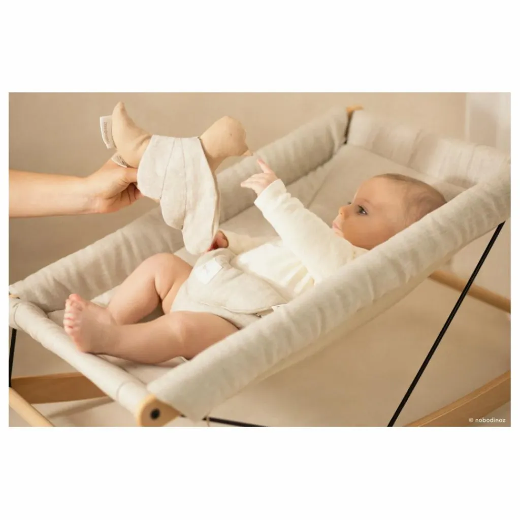Ce transat, élégant et intemporel, offre un mouvement de bascule relaxant en apportant confort et tranquillité à votre bébé tout au long de la journée. Il est léger, facile à déplacer et adapté à tous les intérieurs. Ce transat a été fait en collaboration avec le designer primé Marc Venot.