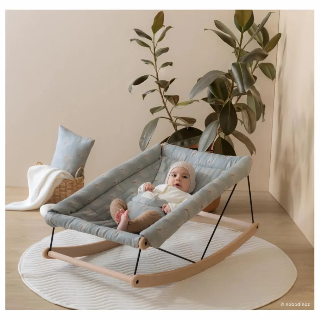 Growing Green, la gamme de mobilier évolutif et design aux matériaux naturels pour enfants. Accueillez votre bébé dans un cocon de douceur, confortable et sécurisé, qui offre un mouvement de bascule suave et relaxant. Il est léger et facile à déplacer dans votre intérieur. Fait de matières naturelles, en bois de hêtre massif au vernis mat et en coton bio matelassé, il est solide et spacieux, parfait pour accompagner votre bébé de sa naissance jusqu’à ses 9kg. L’assise en coton bio se fixe à la structure en bois grâce à de résistantes fermetures éclair.