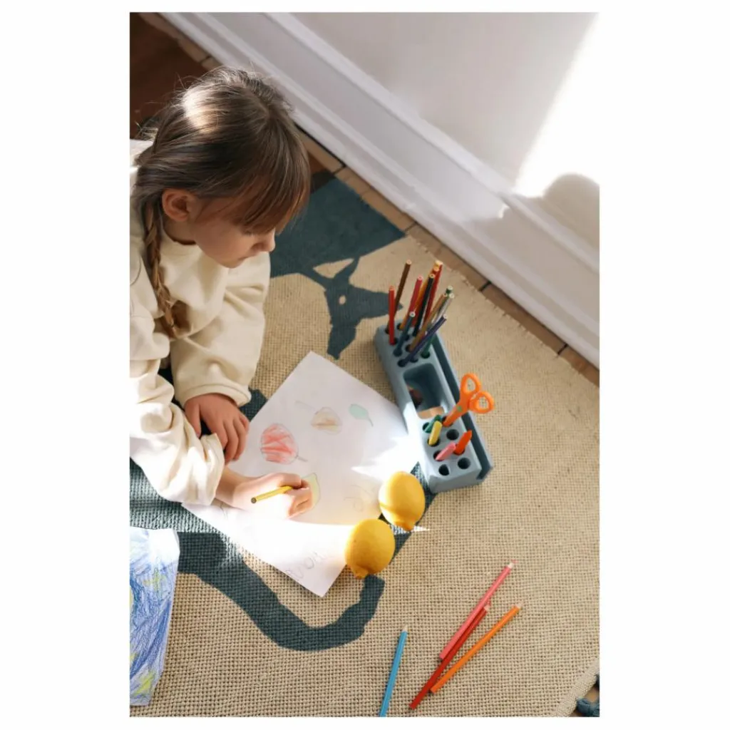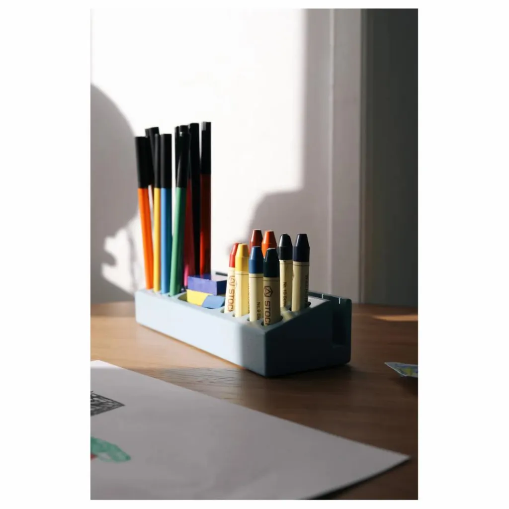- 1 porte-crayon, Plusieurs compartiments pour ranger des pinceaux, des ciseaux, une règle, une gomme, un taille-crayon, un petit bloc-notes etc