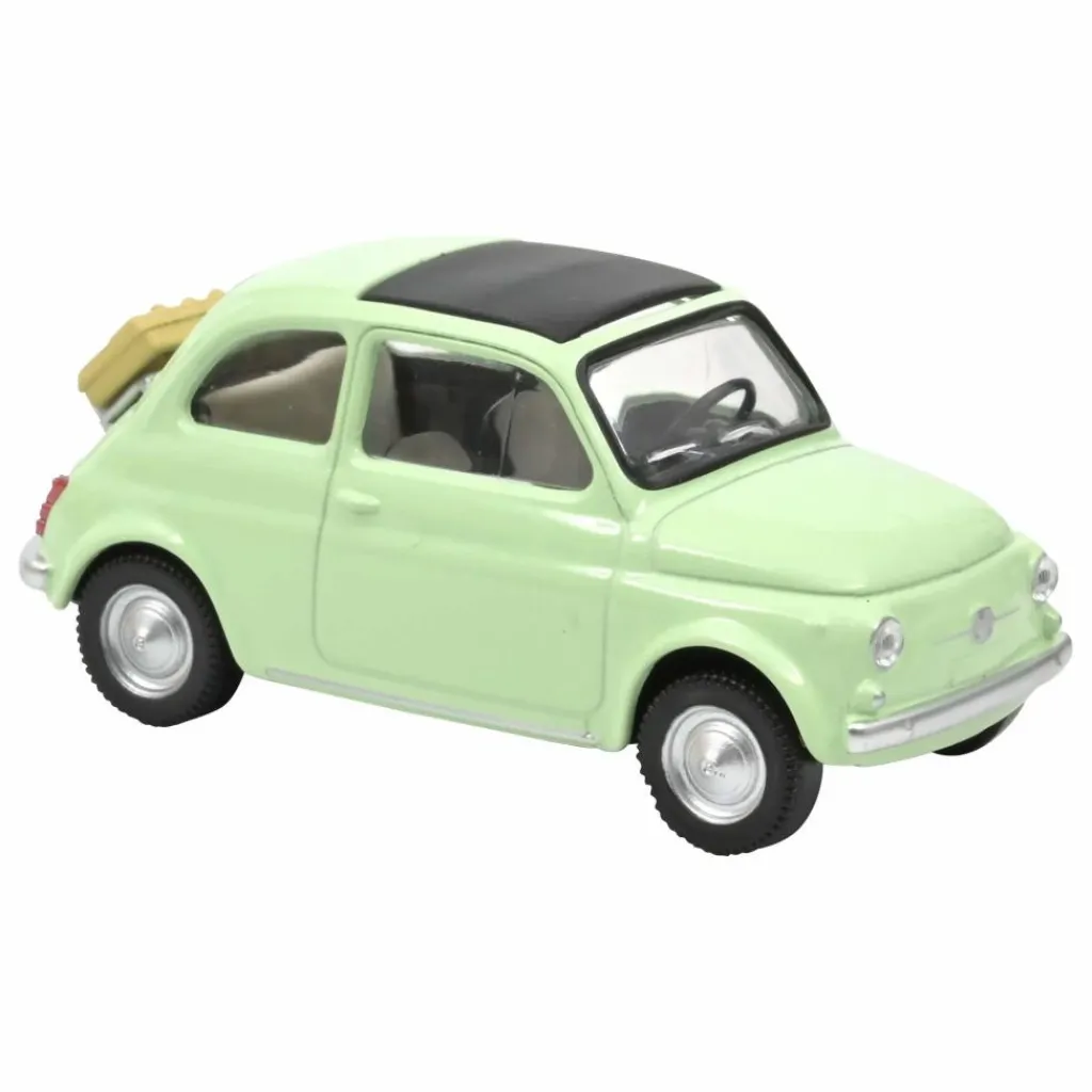 - Avec sa teinte vert pastel, cette Fiat 500 miniature au 1/43 apporte une bouffée d’air frais aux aventures des enfants.