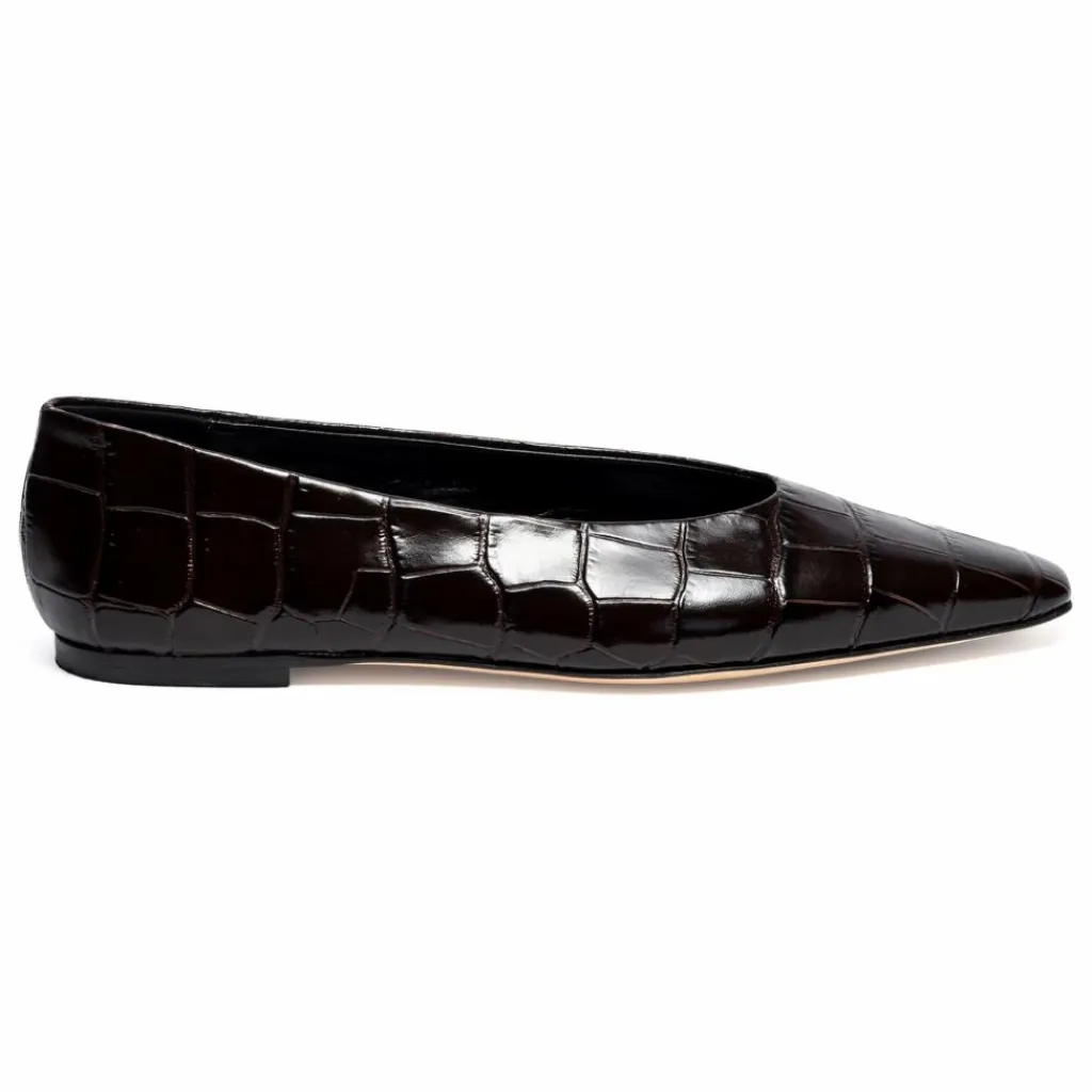 - These flats are known for their semi pointy toe,croc print leather