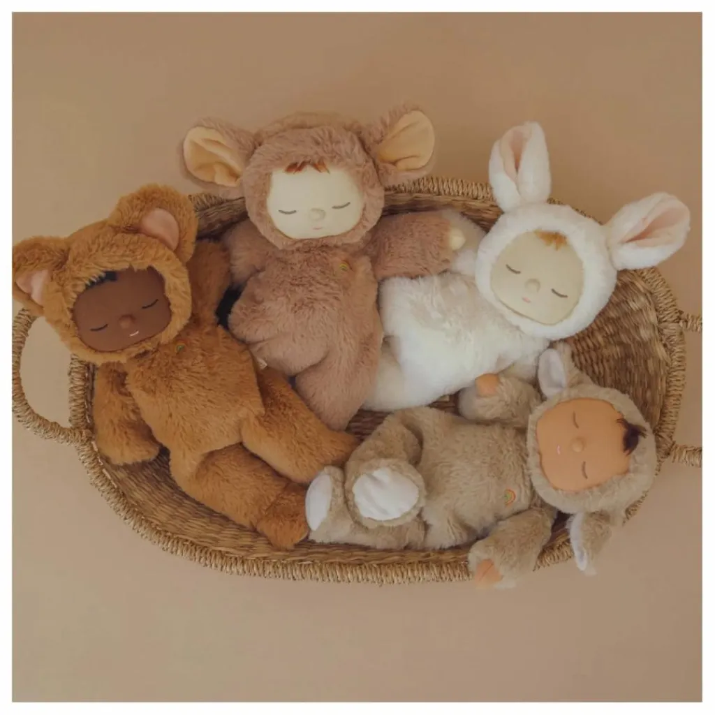 Ce doudou articulé Cozy Dozy Dinkum est un parfait cadeau de naissance qui accompagnera les petits longtemps. Il peut être placé dans de multiples positions de sommeil, sa tête, ses bras et ses jambes étant reliés à son corps par des bandelettes de tissu.