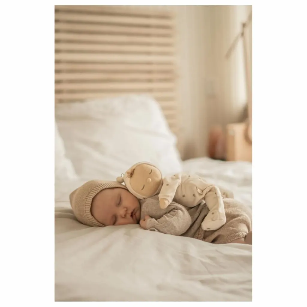 - Corps intérieur Tricot 100% polyester Cheveux de poupée Peluche 100% polyester Broderie 100% polyester Bourrelets 100% polyester Bourrelets 100% polyester Sac 70% viscose de bambou 30% coton, Combinaison de nuit en coton Jersey 100% coton, Corps de poupée Flanelle 100% coton, Ruban de coton Coton 100% coton