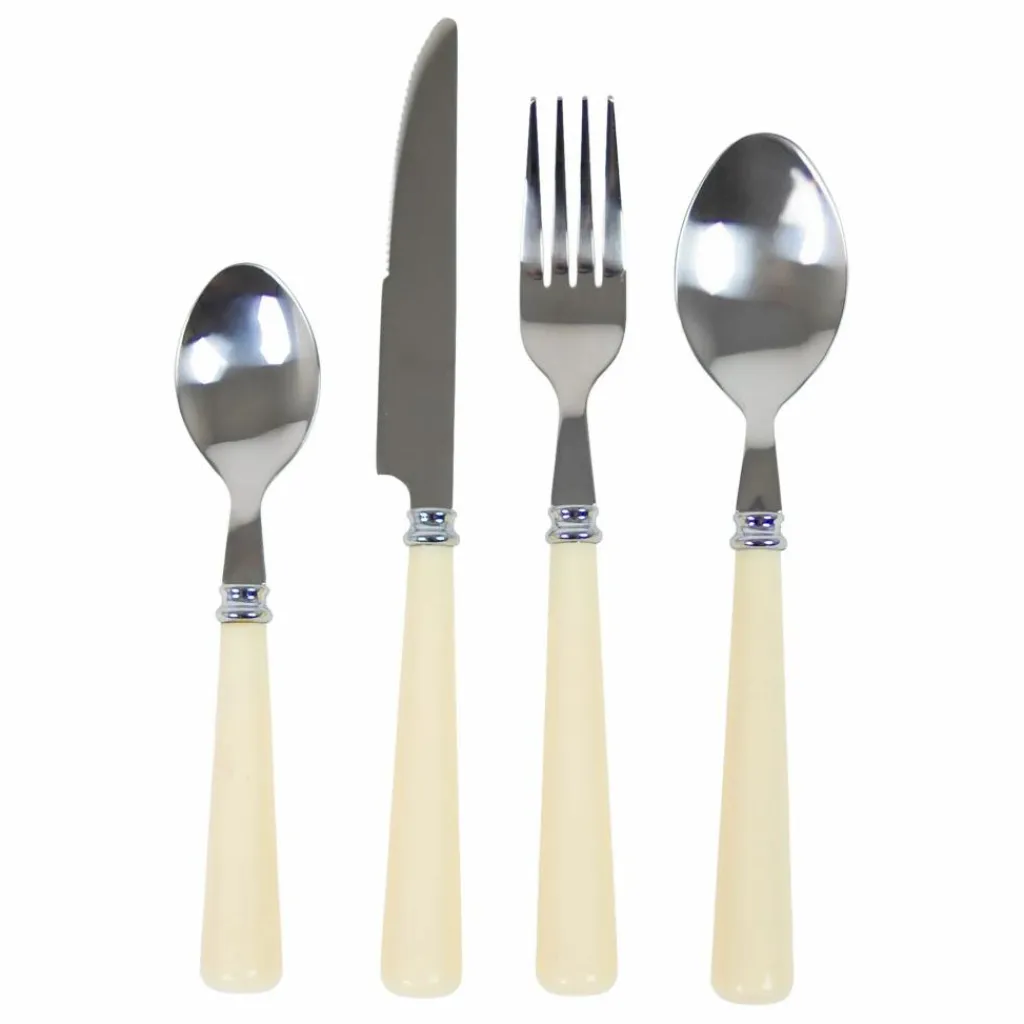 - Couverts en acier inoxydable avec poignées colorées en plastique durable.
