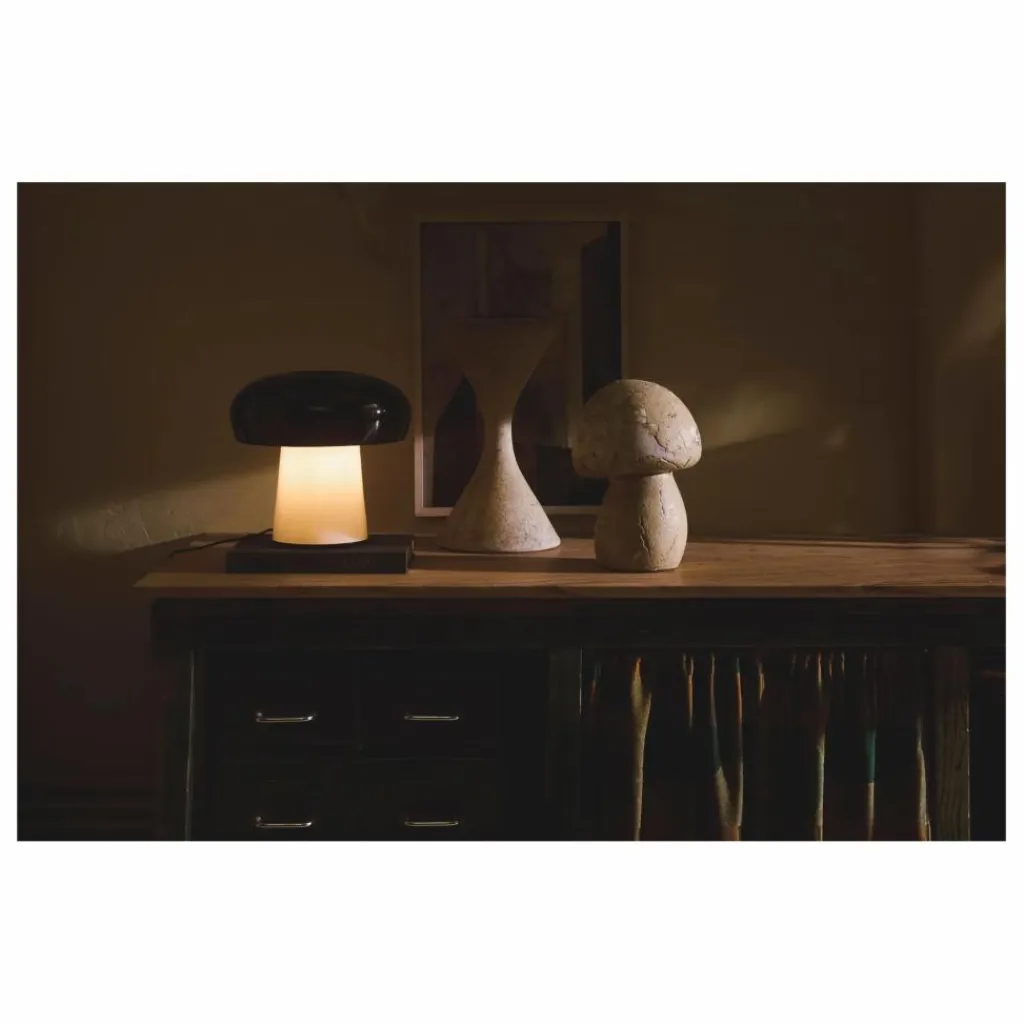 - Hilding – la lampe de table moderne avec une touche rétro. La lampe présente un design bicolore et émet une douce lueur à partir de son socle.