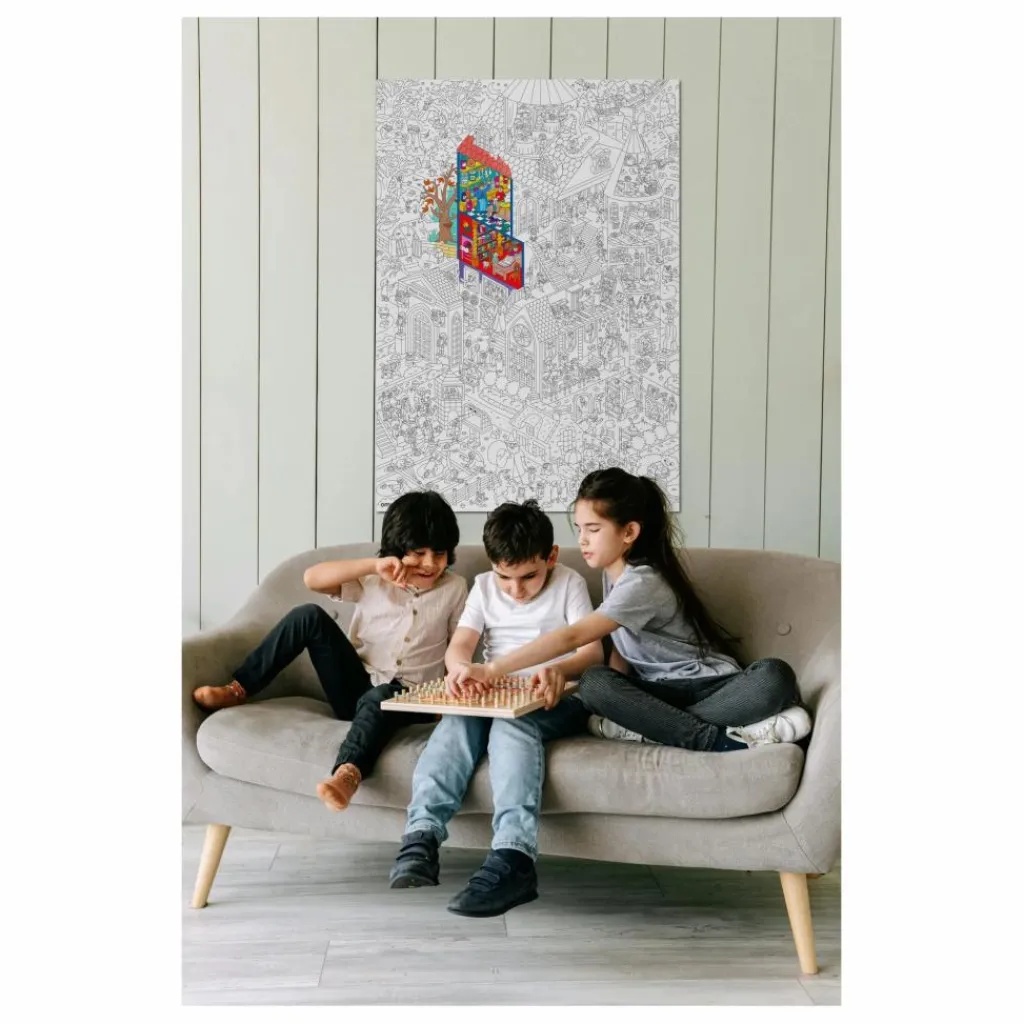 Un grand coloriage à partager pour toutes les occasions ! Ce grand poster aux illustrations pleines d’humour est un véritable espace artistique pour des enfants à l’imagination débordante! L’occasion pour toute la famille de se balader aux alentours d’un château foisonnant de dragons, princesses et trésors. Un trait plein d’humour et une multitude de détails, un véritable voyage graphique à partager entre toutes les générations.Un espace artistique sans limites pour colorier seul ou à plusieurs, à deplier au sol, à accrocher au mur ou à utiliser en nappe.