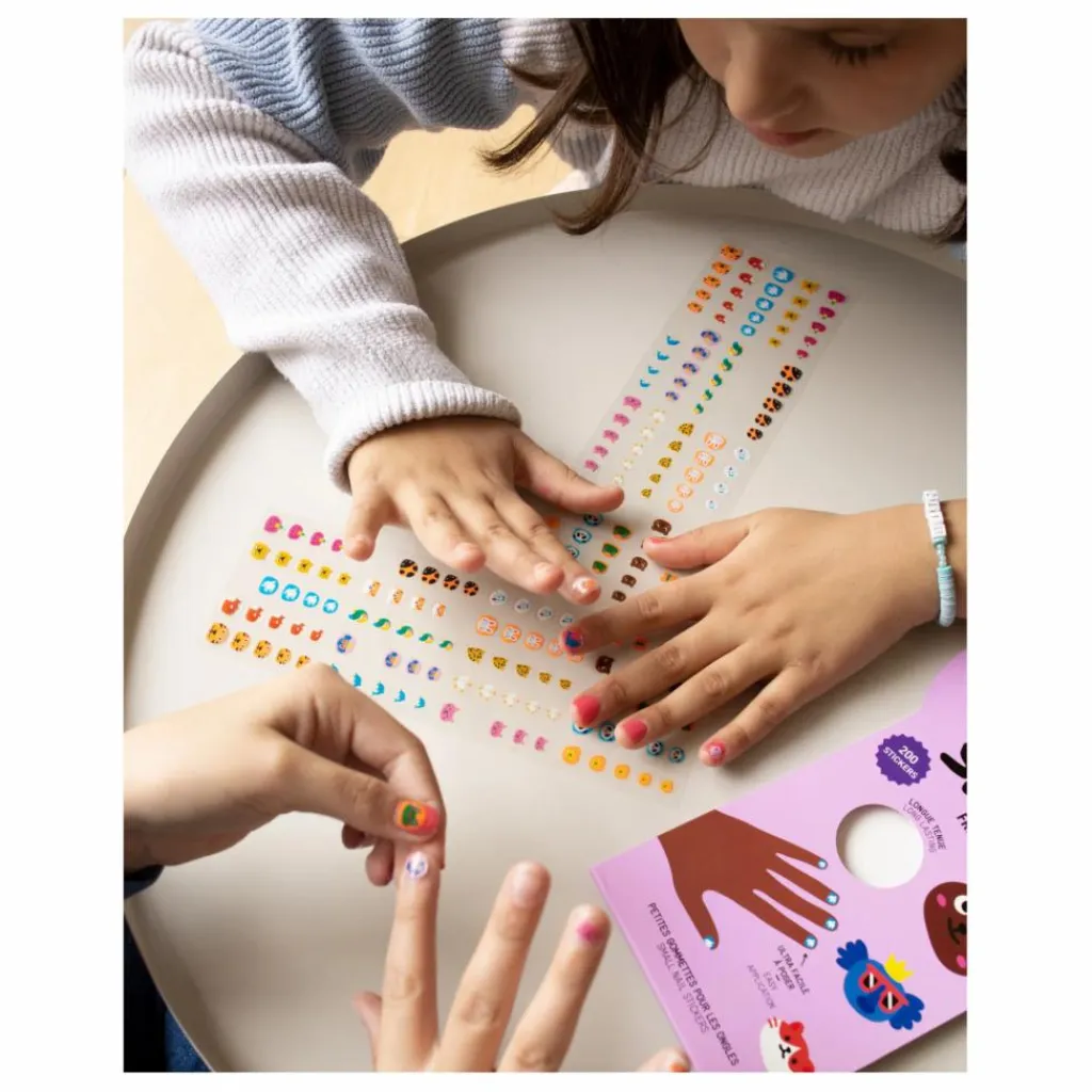 200 petites gommettes pour les ongles ultra facile à poser ! Ces gommettes tiennent 1 à 2 jours minimum et ne se décollent pas quand on se lave les mains. Elles s’adaptent à toutes les tailles d’ongles des enfants.