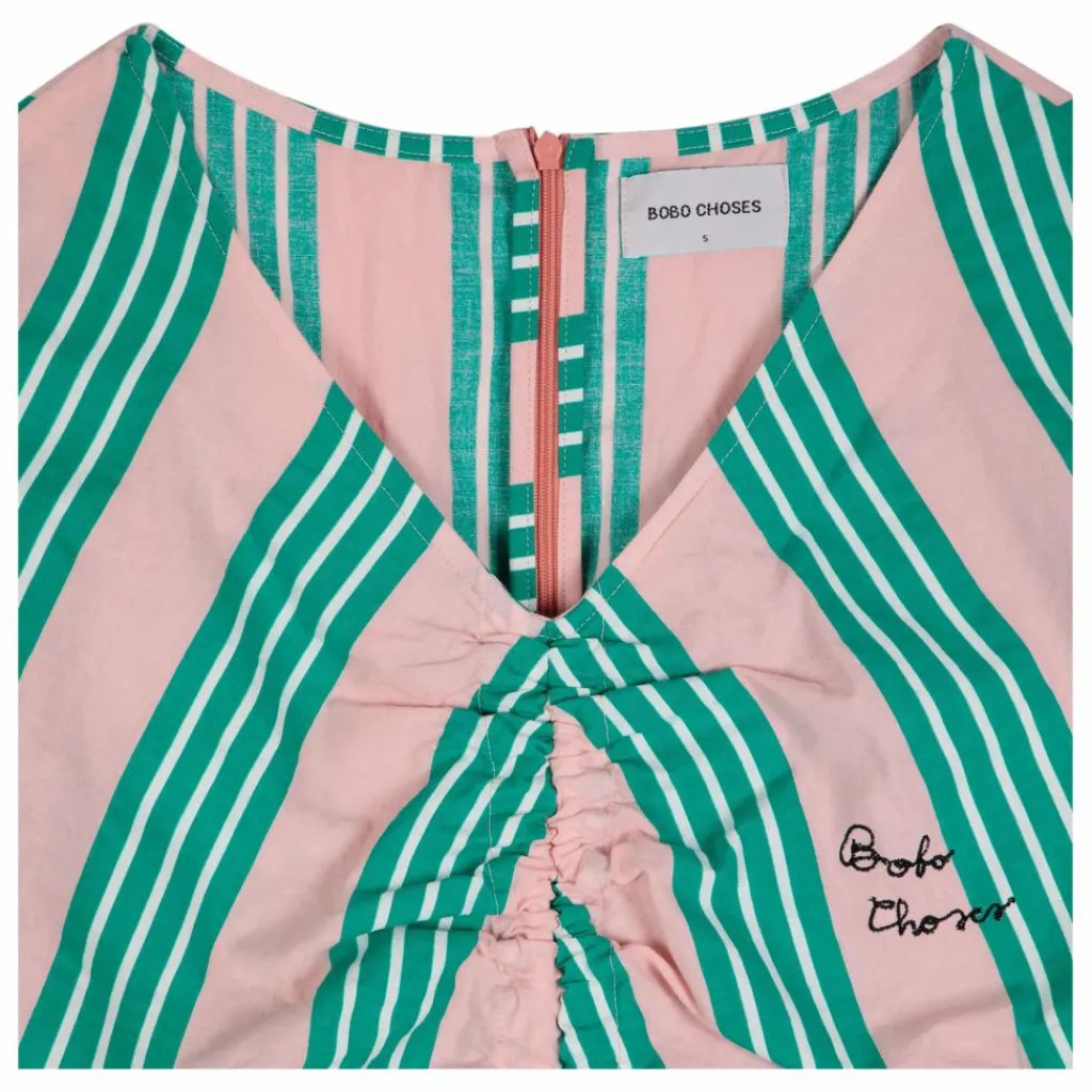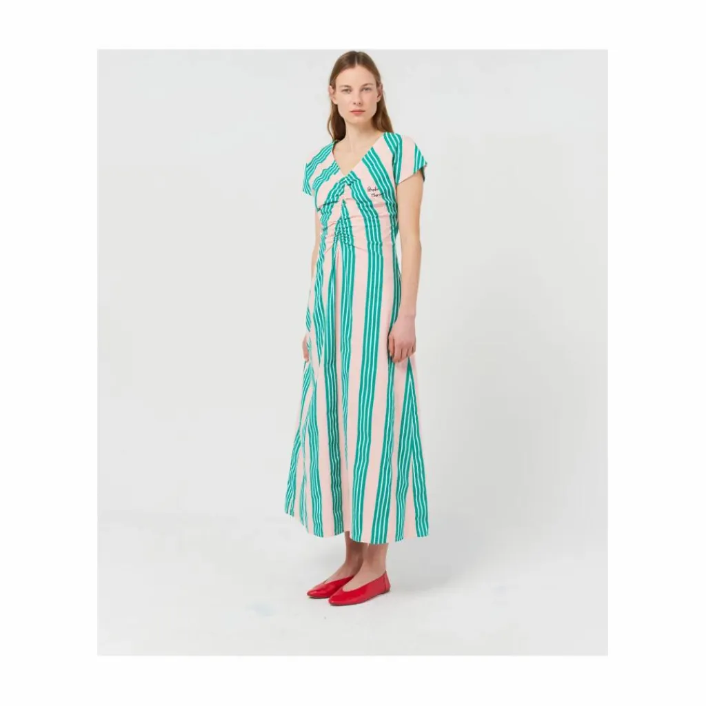 - Resserré à la taille, Froncé sur le devant, Encolure V, Manches courtes, Volanté dans le bas