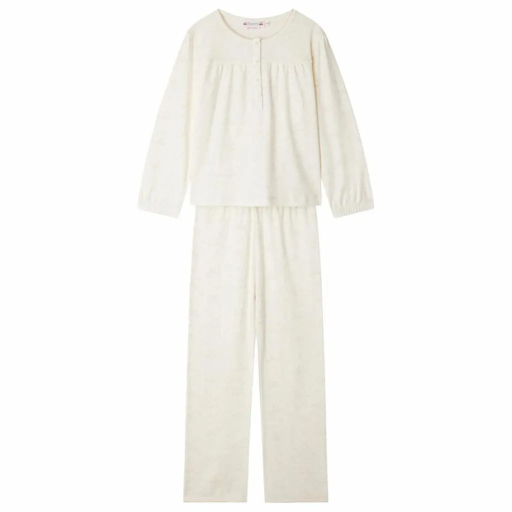 - Le pyjama Jucie pour fille est très confortable avec son bas de jambe large, son col rond boutonné et ses poignets froncés. Il est confectionné en coton biologique.En coton biologiqueDécoupe et fronces sur le busteAvec pochette à cordon