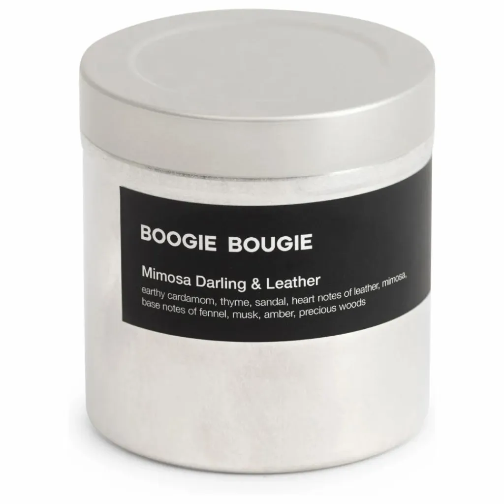 - Mimosa Darling & cuir nous emmène sur les rives ensoleillées, avec des mimosas en fleurs et du cuir raffiné. Une senteur qui évolue gracieusement de douces nuances florales à un cœur poudré, où les délicates fleurs de mimosa et les épices de cardamome s’entremêlent avec la richesse terreuse des sous-tons du cuir. Un mélange harmonieux qui capture l’essence de la Côte d’Azur. Durée de combustion : environ 60 heures