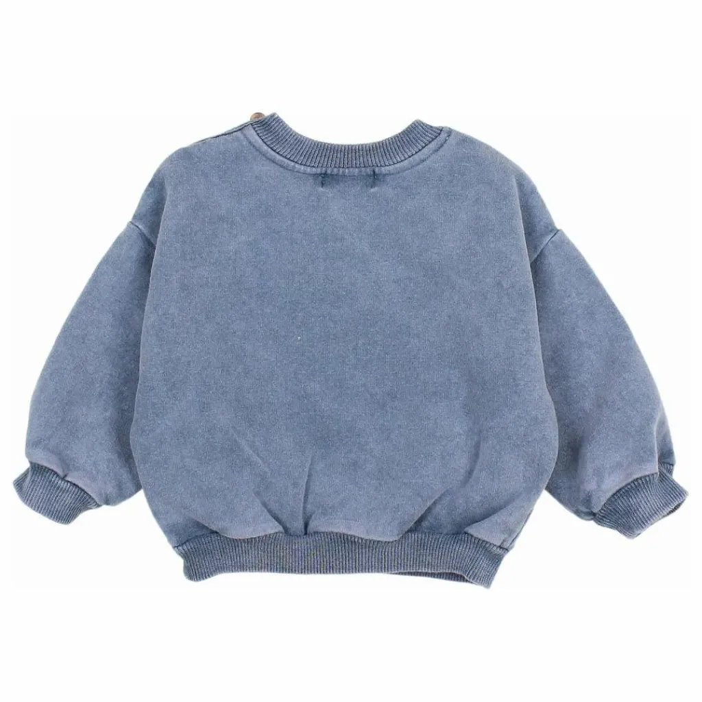 - Sweat en polaire lavée à la pierre avec impression sur la poitrine. Col rond avec fermeture à bouton sur l’épaule. Étiquette sur l’ourlet. Finition côtelée.