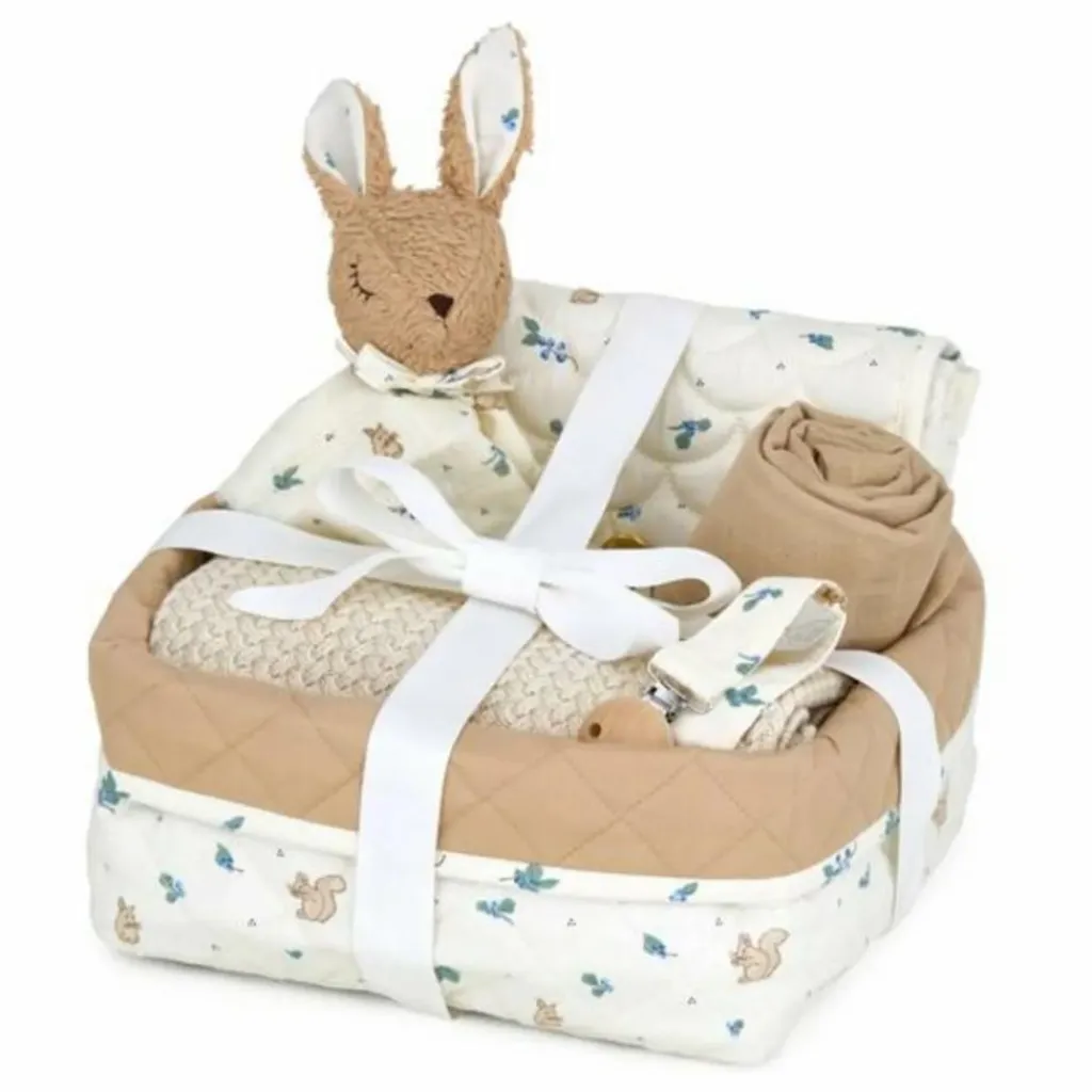 - Somptueux coffret Cadeau Babyshower comprenant une grande sélection d’essentiels pour nouveau-nés : 1 plaid bébé en tricot pointelle Harper, 1 doudou Lapin, 1 linge en mousseline, 1 porte-sucette et 1 matelas à langer. Une précieuse sélection de cadeaux indispensables pour bébés de la plus haute qualité, pour ravir les nouveaux parents et leurs petits miracles. Tous les articles sont fabriqués en coton biologique doux, ornés de couleurs délicates et d’impressions dessinées à la main. Le grand panier en tissu est parfait pour le rangement dans la nursery.