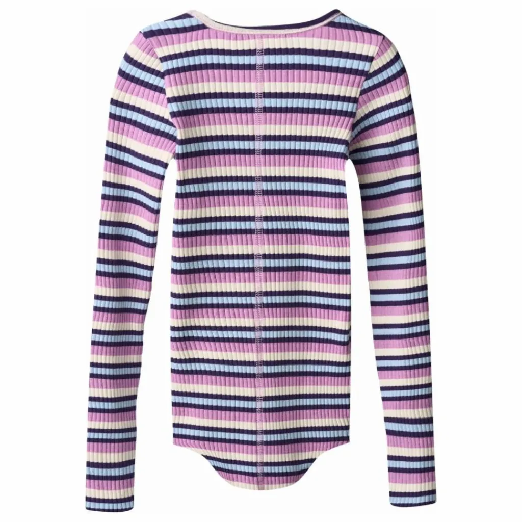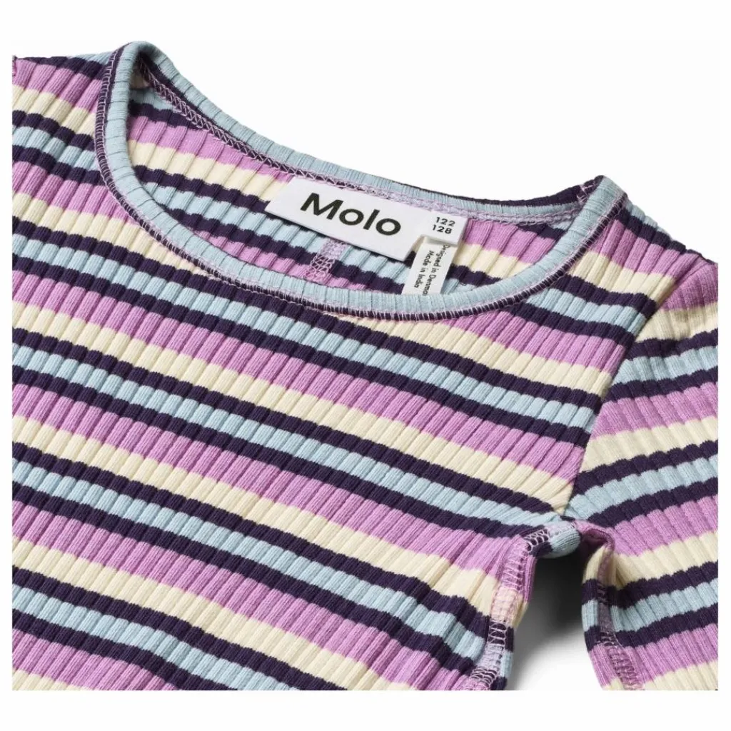 - Ce haut rayé à manches longues de Molo est fabriqué en côte de coton biologique extensible et présente une coupe près du corps. Il présente une encolure ronde, des bords bruts sur les manches avec des trous pour les pouces, une couture verticale dans le dos et un bord brut arrondi dans le bas.