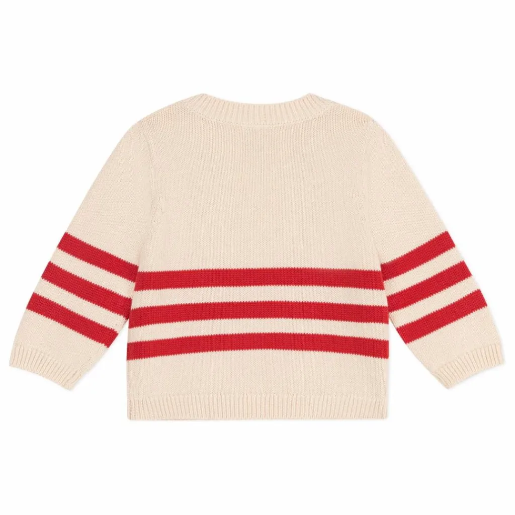 - Pull en coton pour bébés avec des rayures placées et un badge sur la poitrine
