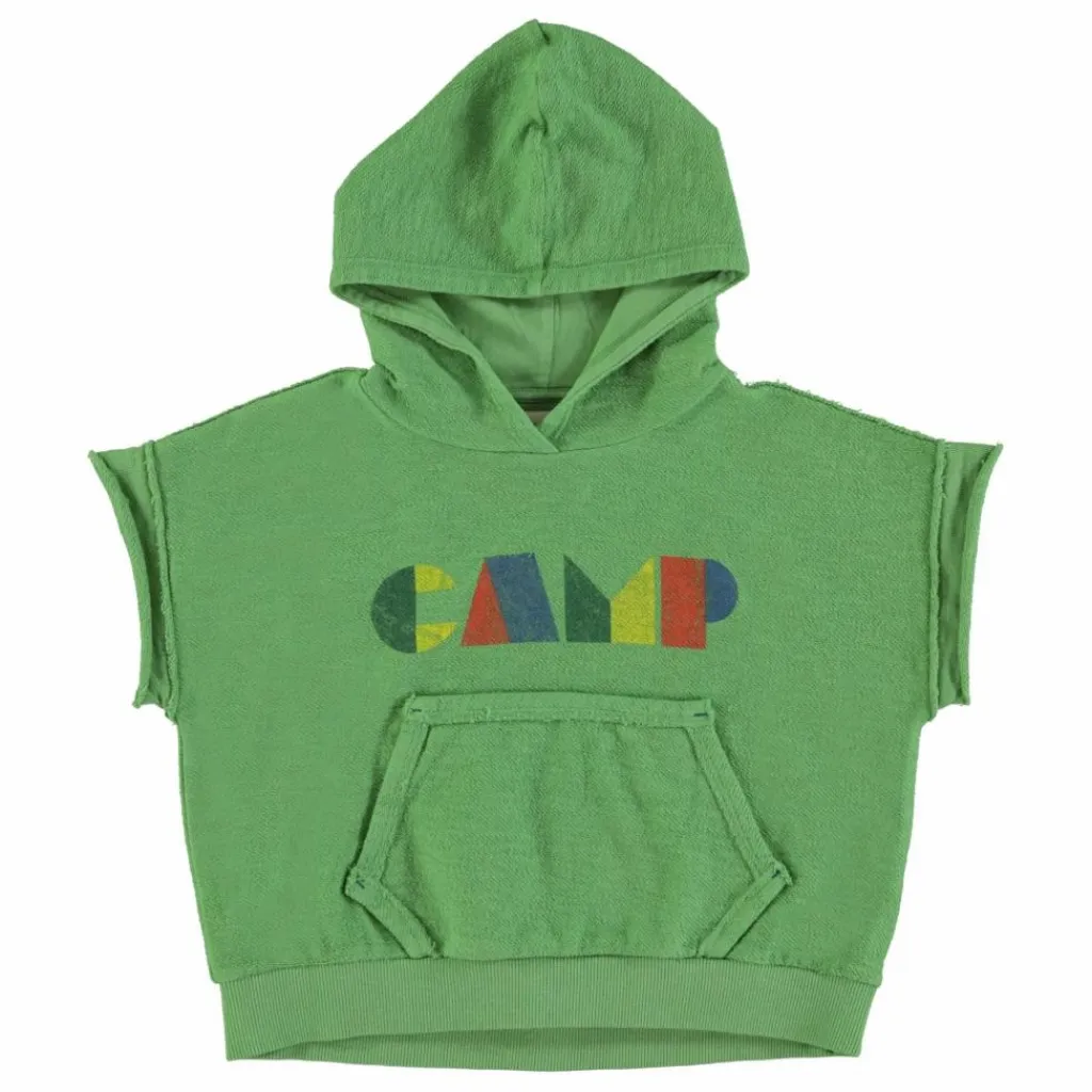 - Sweat à capuche sans manches en molleton de coton flamé (texture extérieure) avec impression sur le devant. Ourlet côtelé. Poche de rangement.