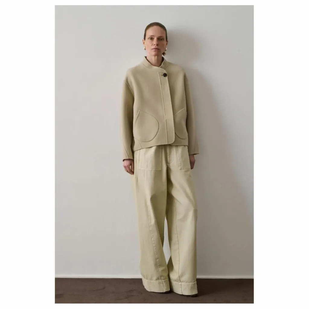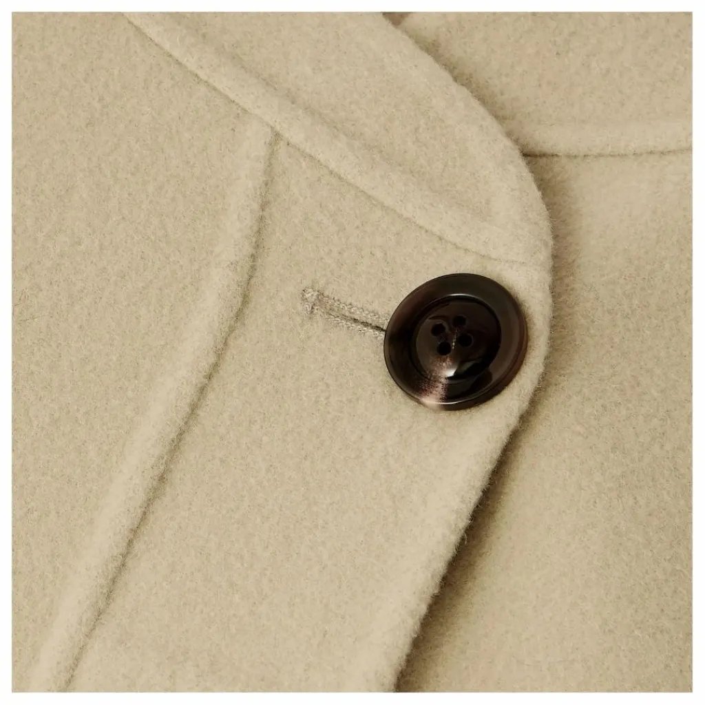 - Manteau court en laine double face,Manteau court et ample,,Col asymétrique,Ouverture semi-cachée boutonnée,Deux poches plaquées devant,,Manches longues et rondes
