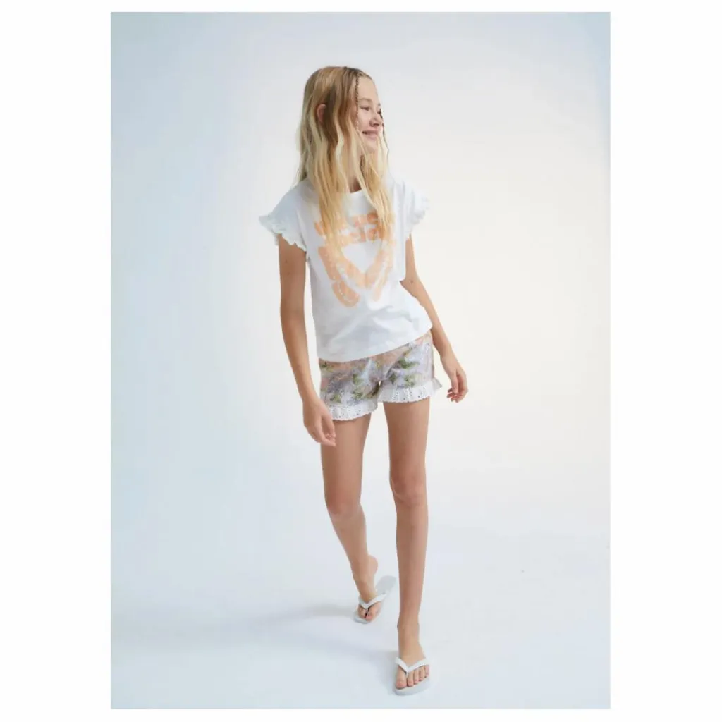 - Bas de manches volantés, Logo imprimé à l’avant, Encolure ronde