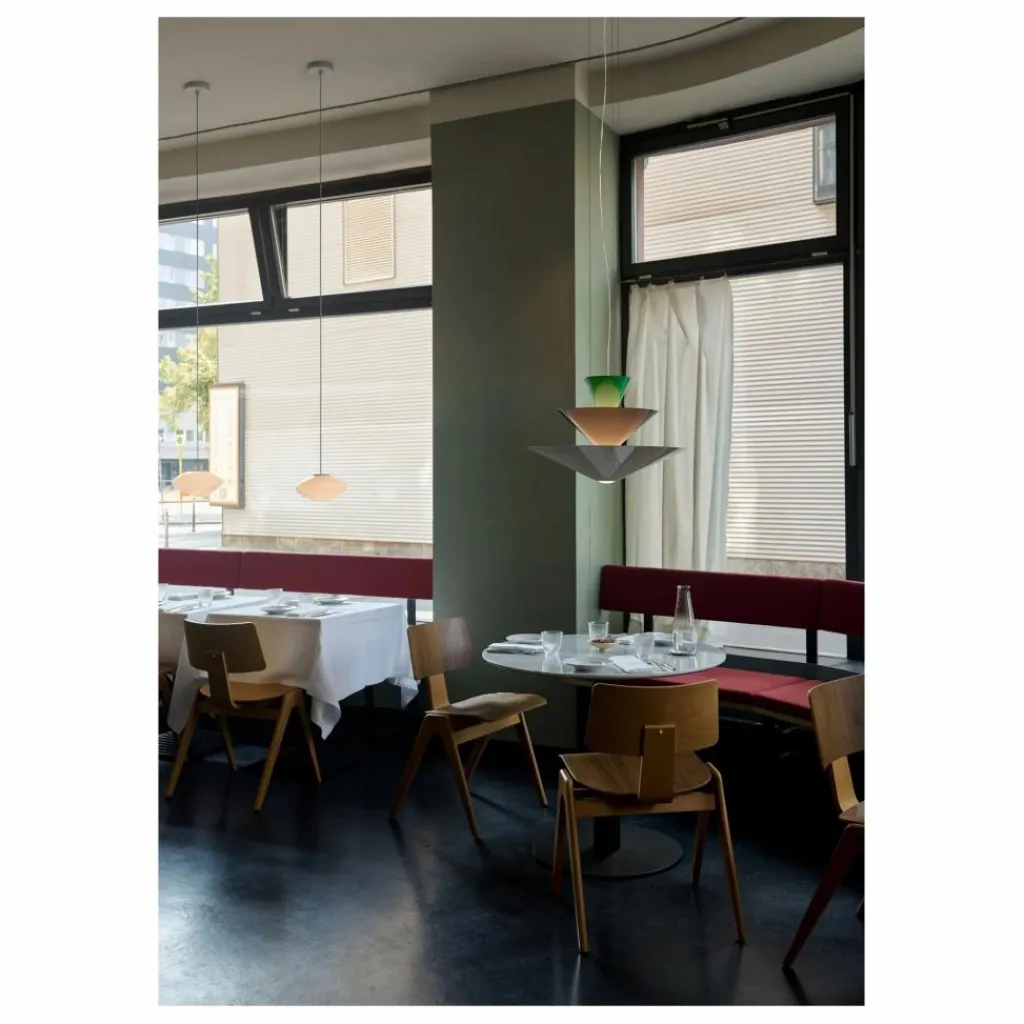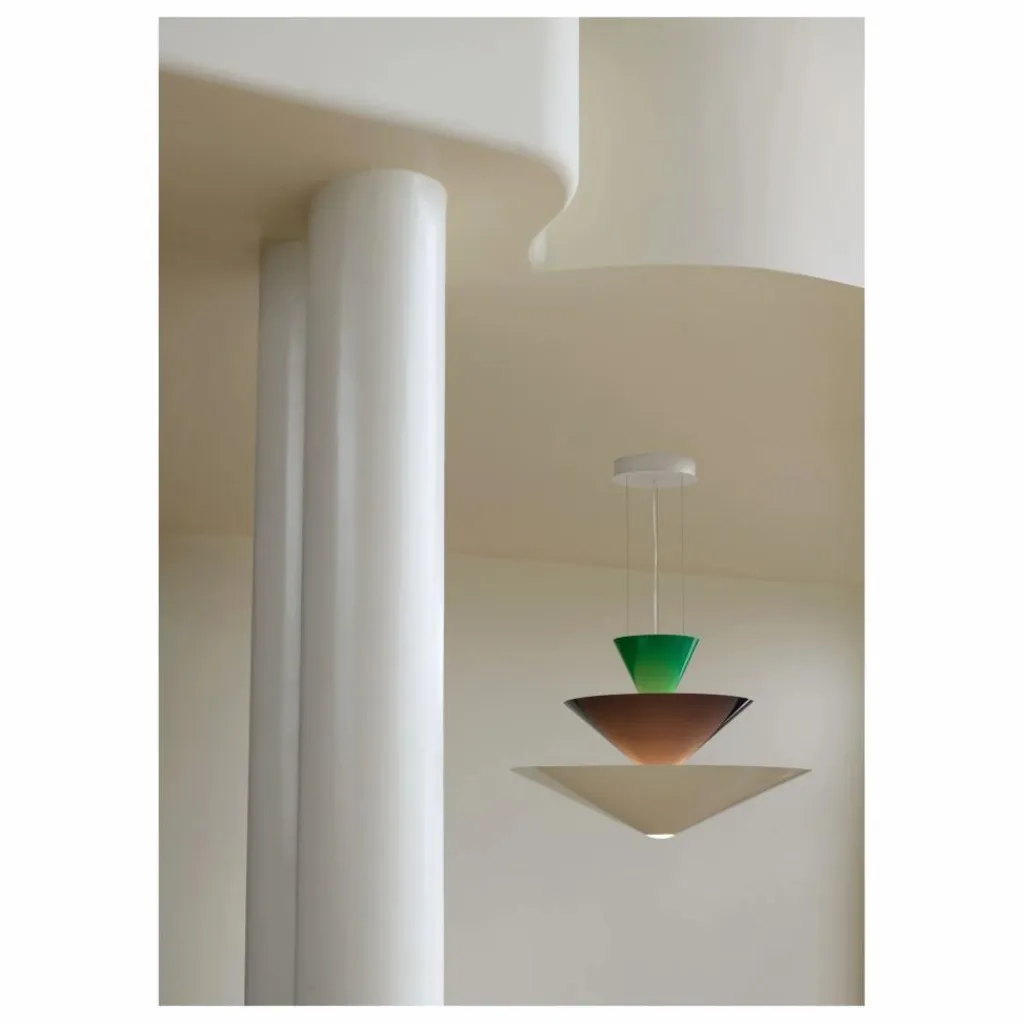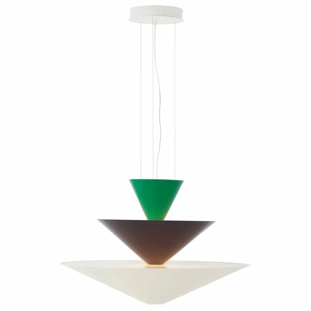- S’inspirant du lustre Murano de Gio Ponti, le lustre Gio transmet la même expression saisissante tout en se concentrant sur les formes géométriques fondamentales et les combinaisons de couleurs vibrantes. Un design minimaliste avec une présence impressionnante, le lustre célèbre l’union des formes classiques et contemporaines en une seule déclaration cohérente.