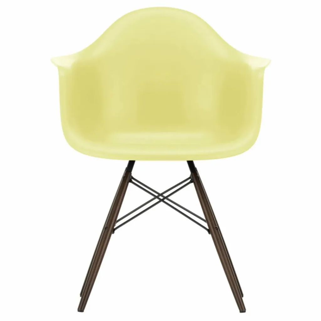 La chaise DAW (Dining Height Armchair Wood Base), conçue par Charles et Ray Eames, est un exemple emblématique d’un siège dont la coque peut être associée à différents types de piètements. Son piètement en bois crée un contraste intéressant avec la coque en plastique recyclé post-consommation. Cette combinaison de matériaux offre non seulement un aspect visuel attrayant, mais elle contribue également à la durabilité de la chaise en utilisant des matériaux recyclés.