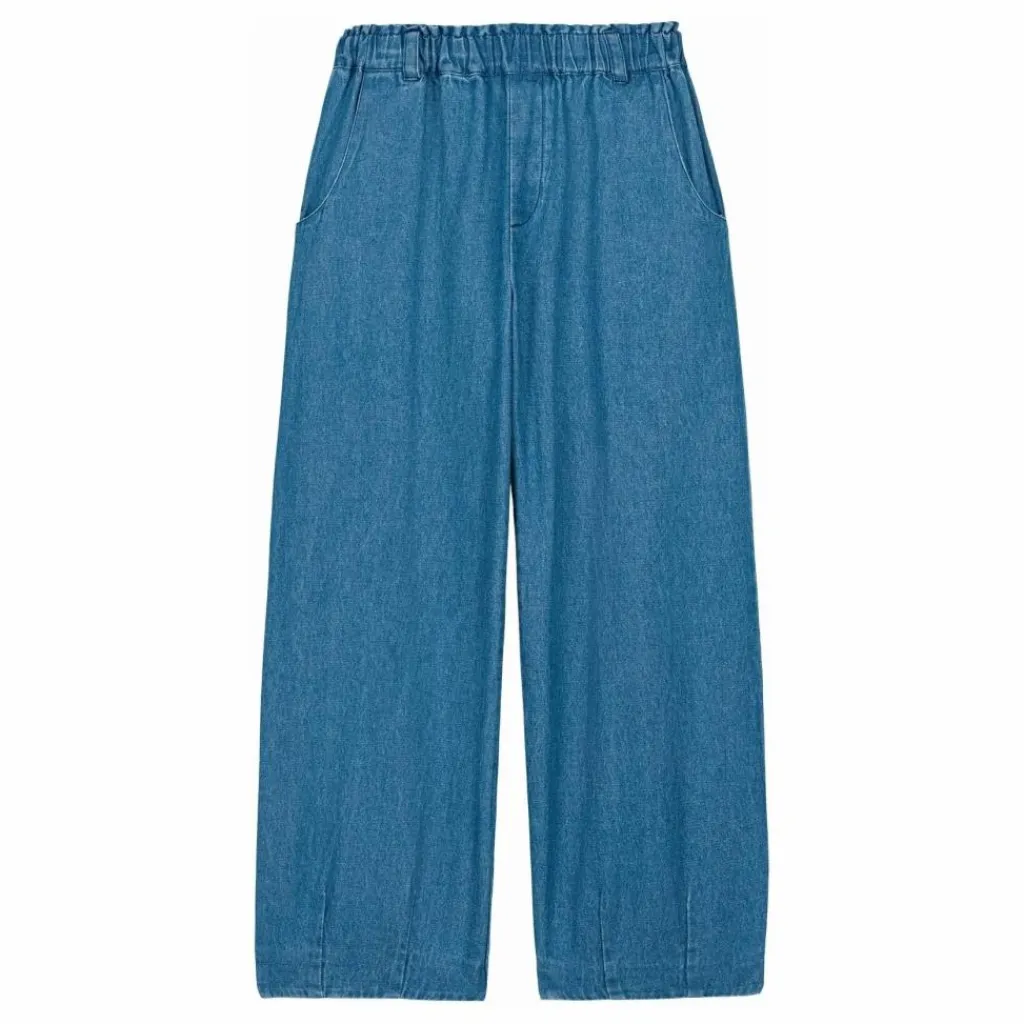 - Pantalon large Passants de ceinture Taille élastique 2 poches latérales Logo brodé sur la poche arrière droite