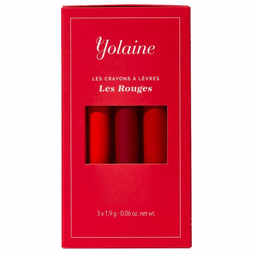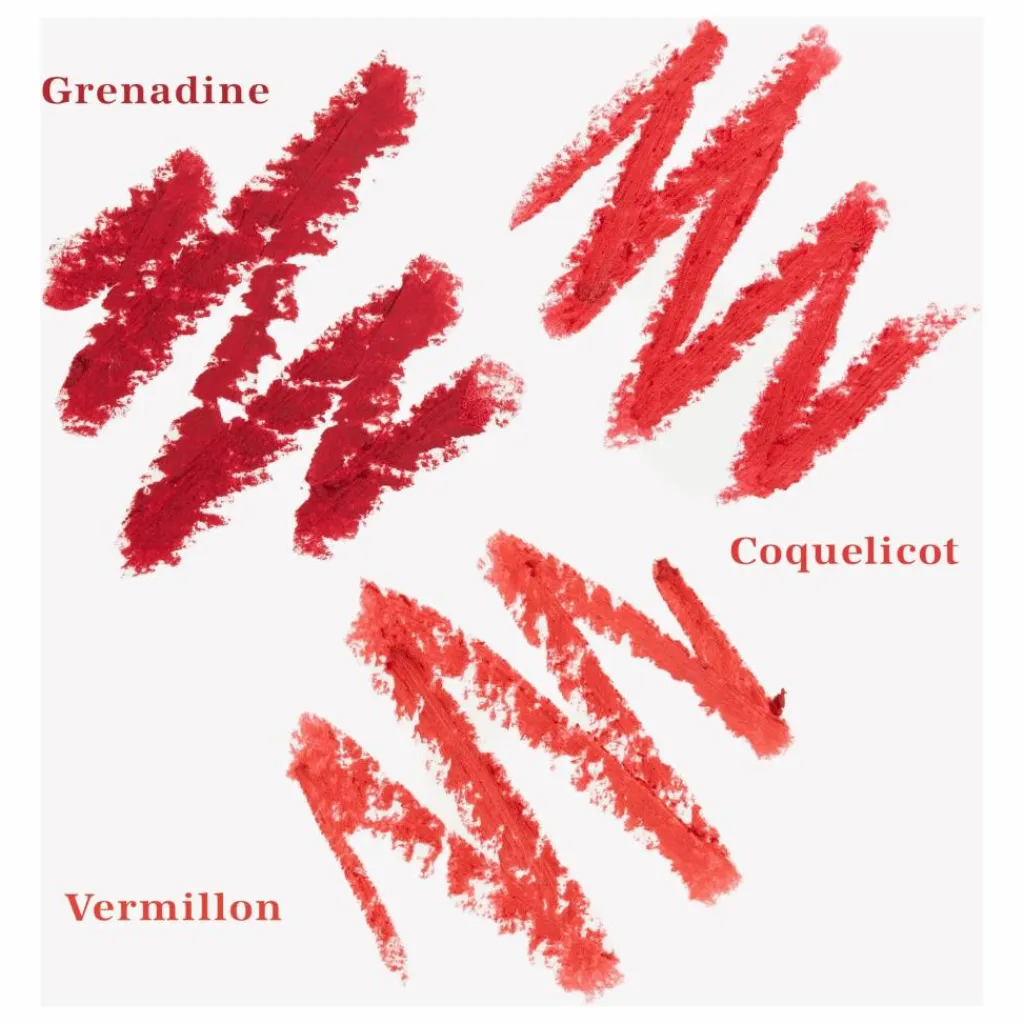 - Un trio de rouges sous forme de crayons de couleur, nichés dans un écrin qui évoque un livre vintage. Texture crémeuse, fini mat, nomades à souhait : le nouvel essentiel de sac à main. Alors, plutôt Coquelicot, Grenadine ou Vermillon ?