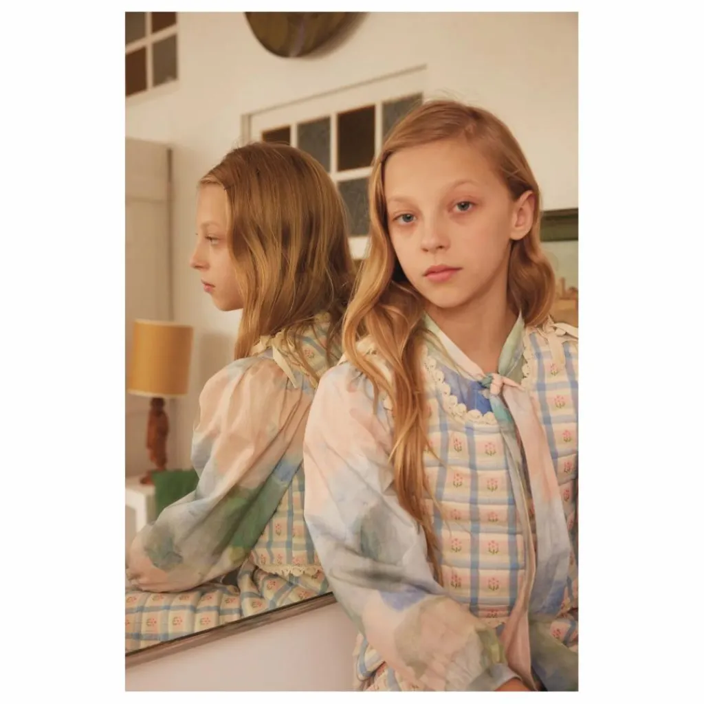 - Le gilet Zora, favori de l’automne, est confectionné en coton mélangé matelassé. Cette élégante veste à carreaux fleuris nostalgiques est dotée d’une ouverture aux épaules avec des liens en ruban et de délicats détails en dentelle sur tout le pourtour. Parfait et confortable pour les aventures de tous les jours ou les événements spéciaux.