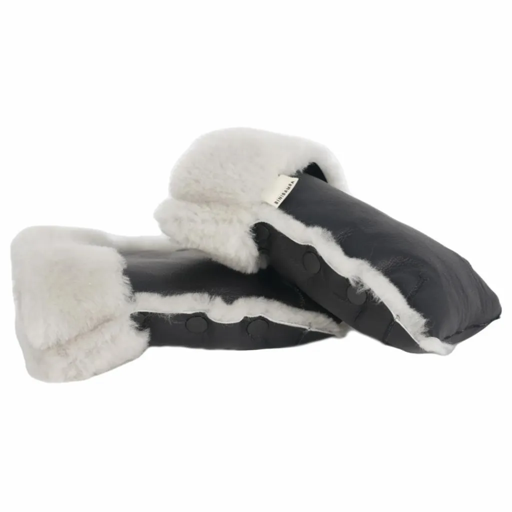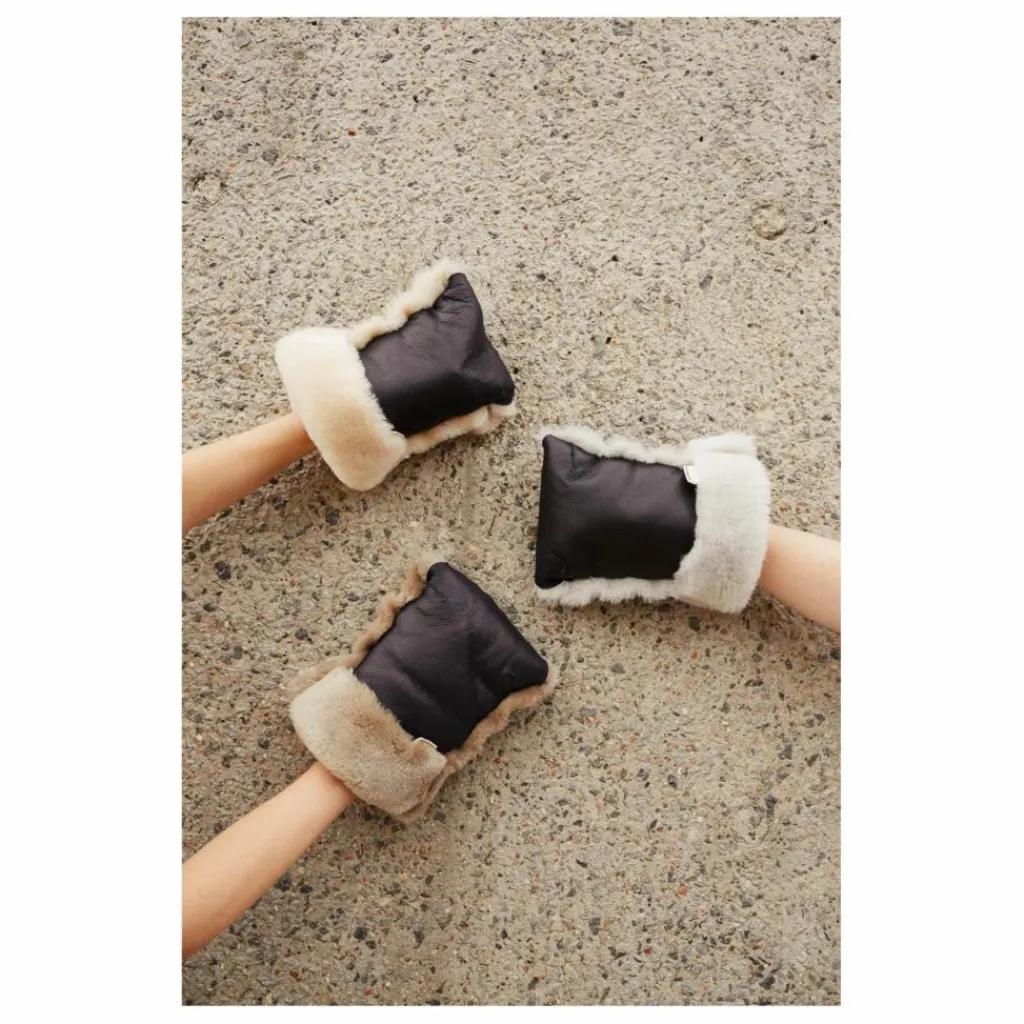 Une vague de froid ? Vous pouvez y faire face ! Gardez la chaleur lors de vos promenades hivernales grâce à ces moufles en peau de mouton enduite à enfiler pour les poussettes.