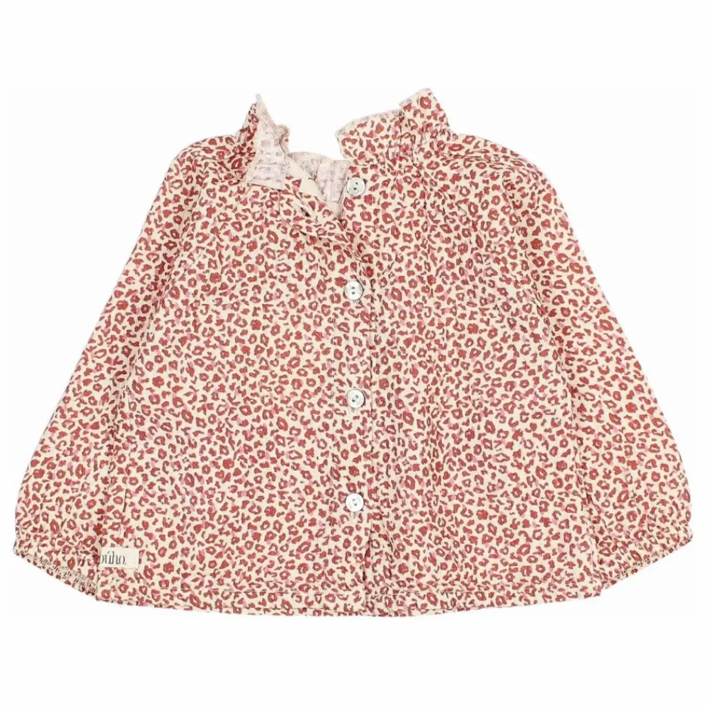 - Chemisier à imprimé animalier. Encolure ronde avec volants et plis. Fermeture par boutons au dos. Manches ranglan. Poignets élastiques.