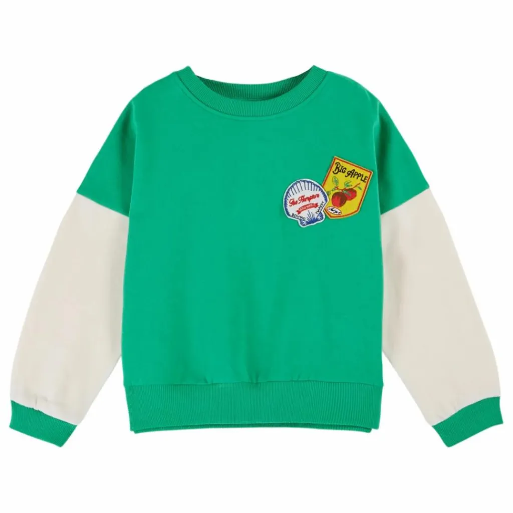 - Sweatshirt en jersey de coton biologique, molletonné et gratté, rose avec des manches blanc cassé. Deux badges faisant référence à New York sont cousus sur le cœur de vos filles.