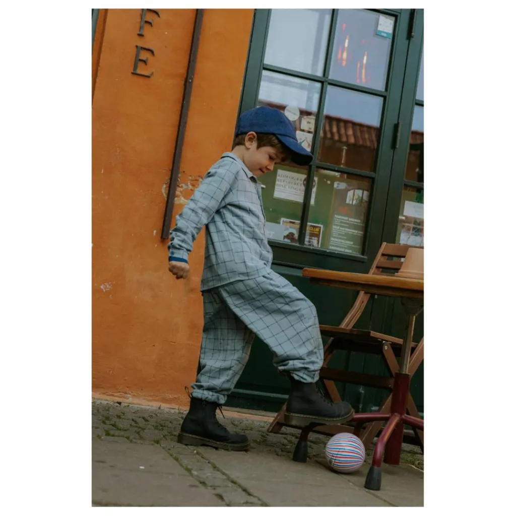 - Pantalon en coton doux avec poche latérale et taille élastiquée. Le pantalon est accompagné d’une chemise de même qualité qui s’ajuste parfaitement.