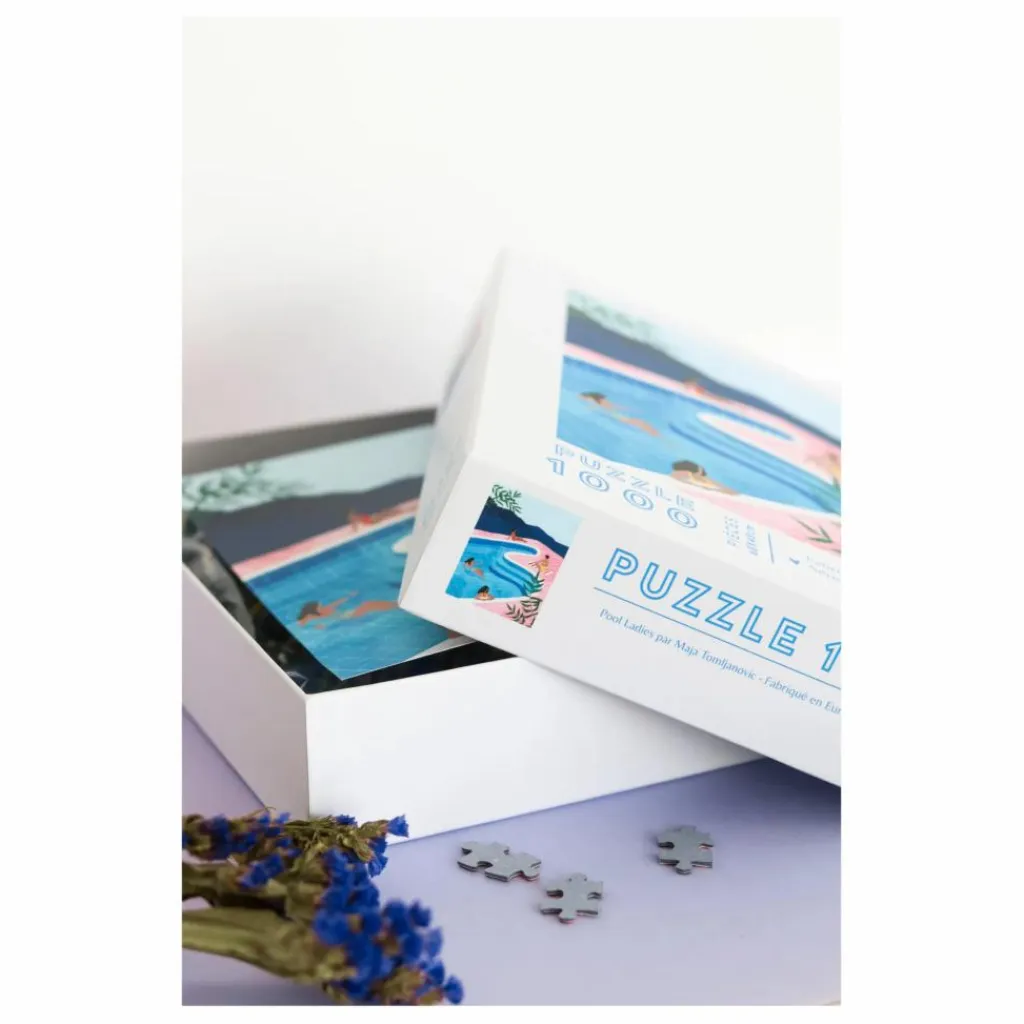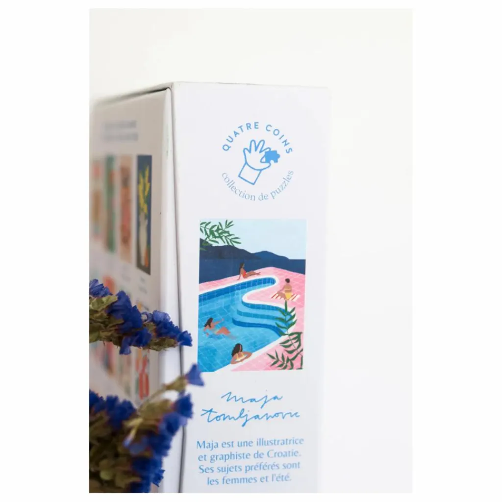 Ce joli puzzle sur le thème « Pool Ladies » a été illustré par Maja Tomljanovic. Il est issu de la collection » Quatre coins », une collection de puzzles qui met à l’honneur des illustratrices des quatre coins du monde.