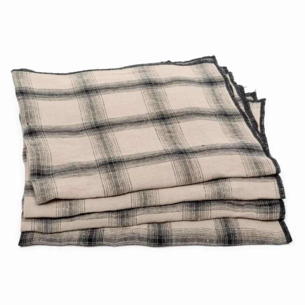 - Lot de 4 serviettes de table motif tartan. Finition coutures apparentes.