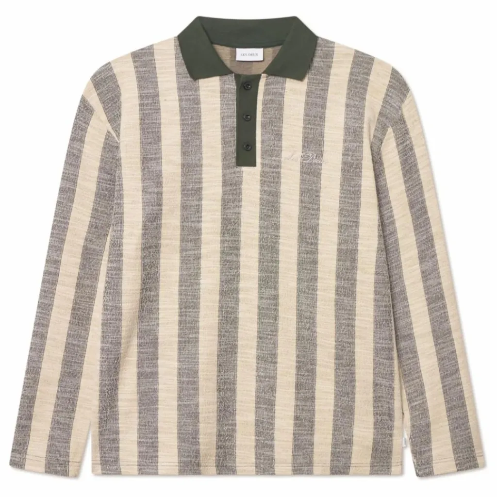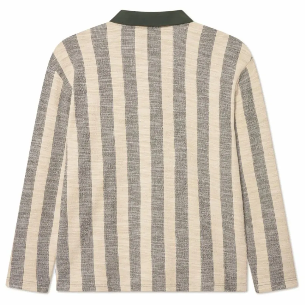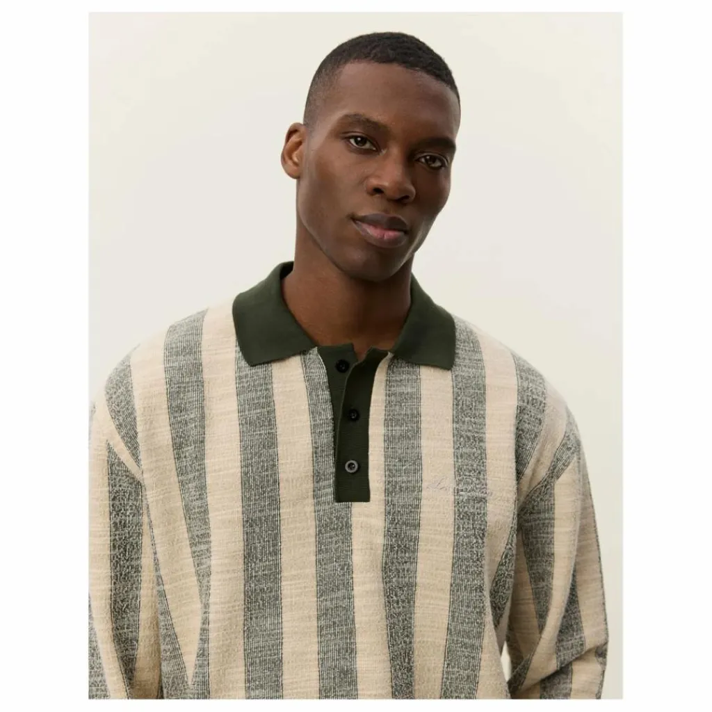 - Jersey jacquard épais Motif de rayures verticales Patte de boutonnage à trois boutons Col polo côtelé Signature Crew brodée Ourlet droit avec coupe décontractée