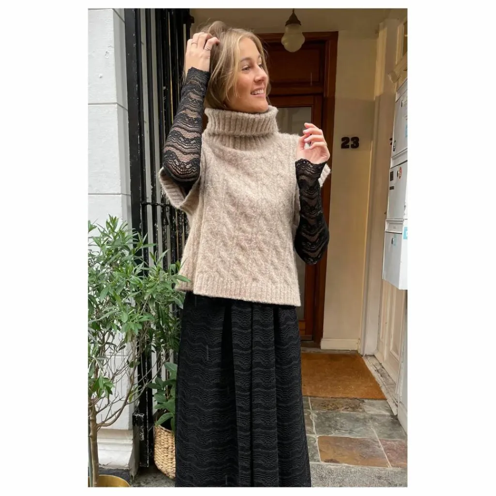 - – Gilet en maille douce – Col montant et motif câblé classique – Ourlet et emmanchures côtelés – Coupe régulière et décontractée