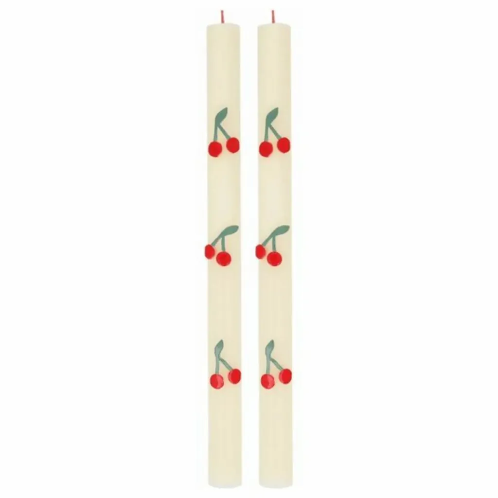 - Estivales et amusantes… les cerises sont le design incontournable pour donner un nouveau look à vos soirées. Ces bougies ivoire présentent des cerises en cire vibrantes avec une finition peinte à la main. Et, pour une touche vraiment spéciale, nous avons également ajouté des mèches rouges ! Ces bougies de table sont idéales pour les dîners ou pour ajouter de l’ambiance à une garden-party. Elles constituent un délicieux cadeau d’hôte ou un cadeau pour tous ceux qui aiment les bougies décoratives.
