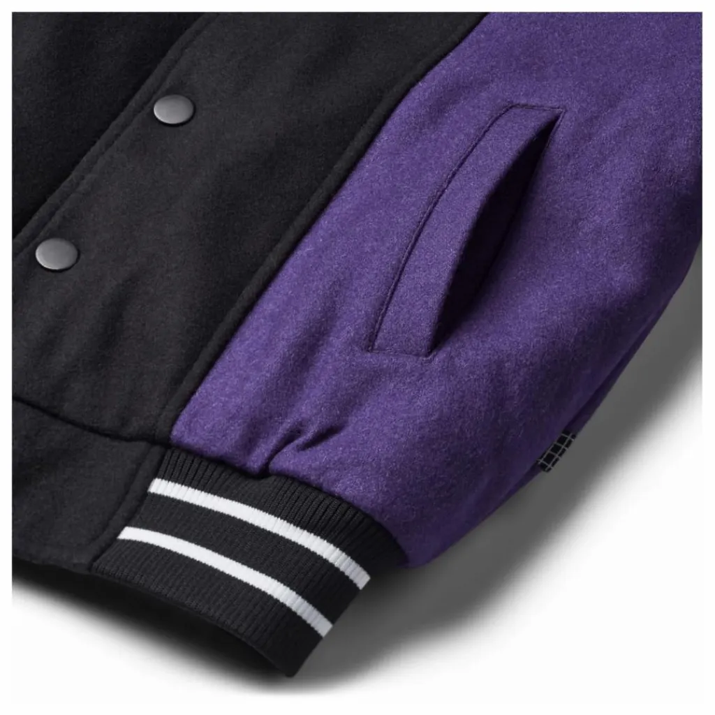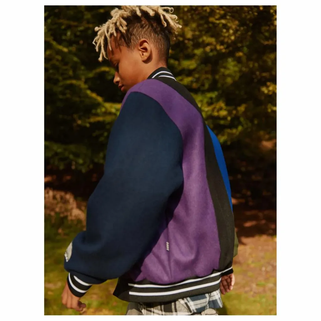 - Cette veste de baseball de Molo est fabriquée en laine mélangée robuste et combine des couleurs noires, bleues, vertes et violettes. La veste se ferme par des boutons sur le devant, a des poches passepoilées sur le devant, ainsi que des bords côtelés rayés au niveau du cou, des manches et du bas. Sa coupe ample permet d’y glisser un pull supplémentaire.