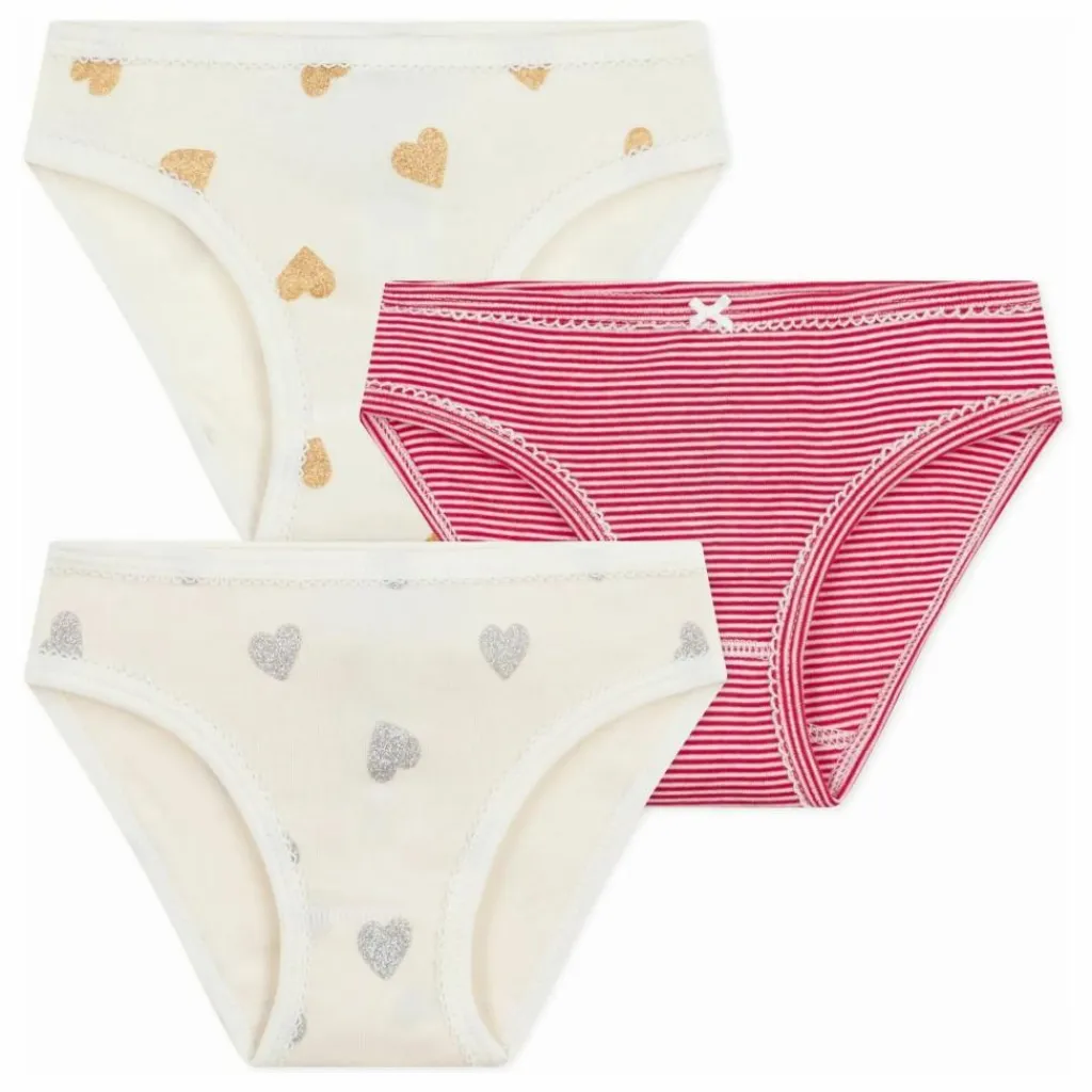 - Ce lot comprend deux culottes imprimées cœurs à paillettes et une culotte en côte 1×1 rayures milleraies. Pour les fêtes, notre emblématique imprimé cœur se pare d’une pluie de paillettes !