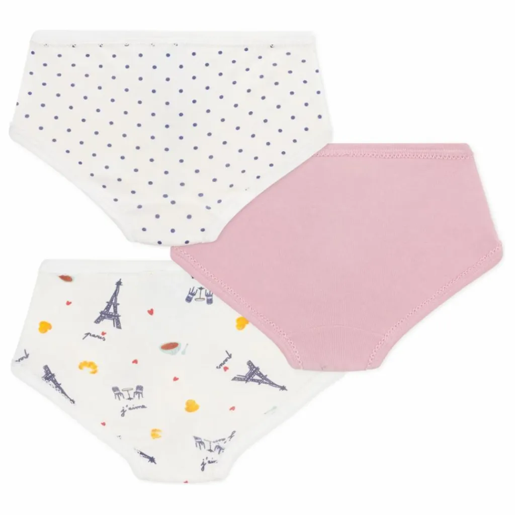 - Forme taille haute plus couvrante que la culotte classique. Ce lot comprend deux culottes à imprimés Paris et petits pois et une culotte en côte 1×1 unie. Finition picots, et nœud sur la culotte unie.