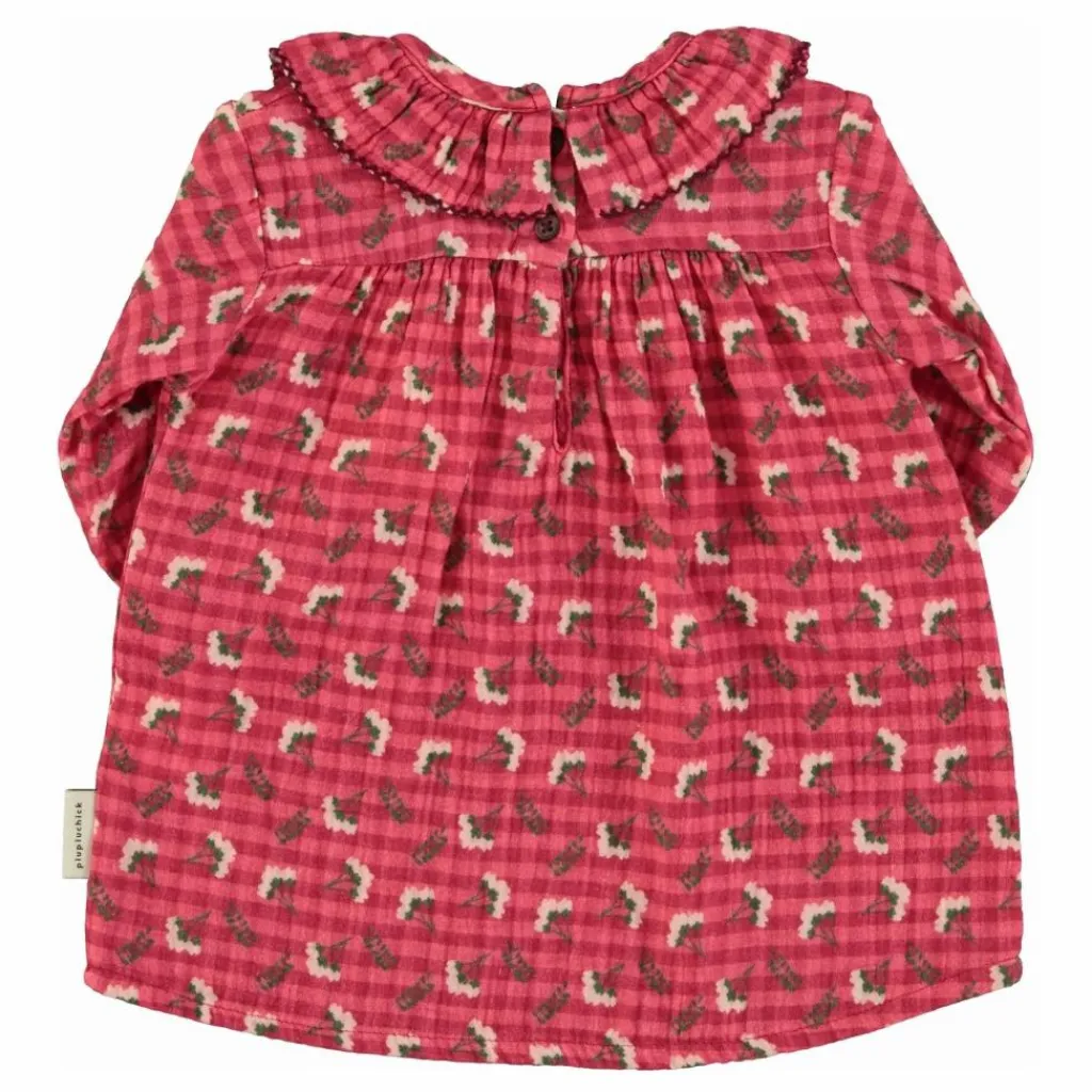 - Robe pour bébé avec col à volants. Poignets élastiqués. Boutons au dos. Empiècement à volants.