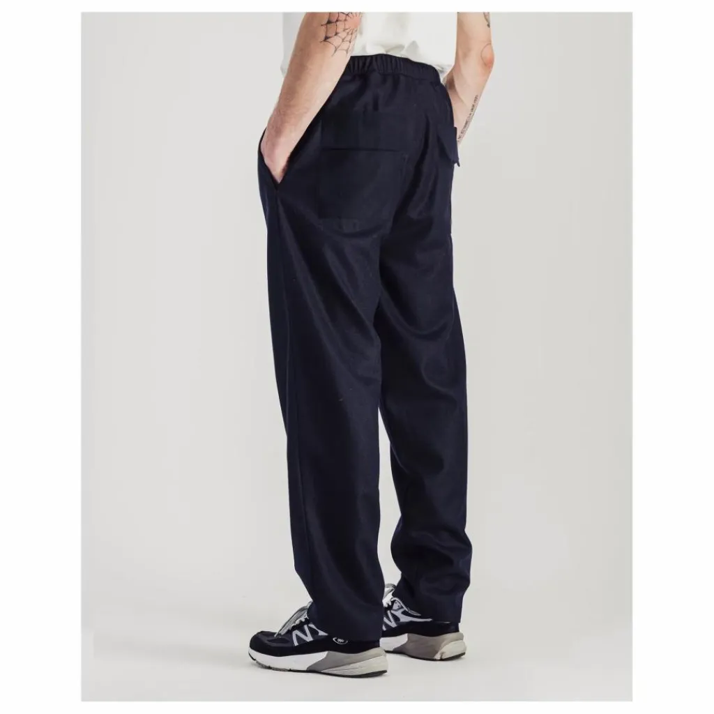 - Pantalon décontracté qui allie le confort d’un pantalon de jogging avec sa coupe large et sa taille élastiquée à l’élégance d’un pantalon de tailleur grâce à son délicat tissu 100% laine.