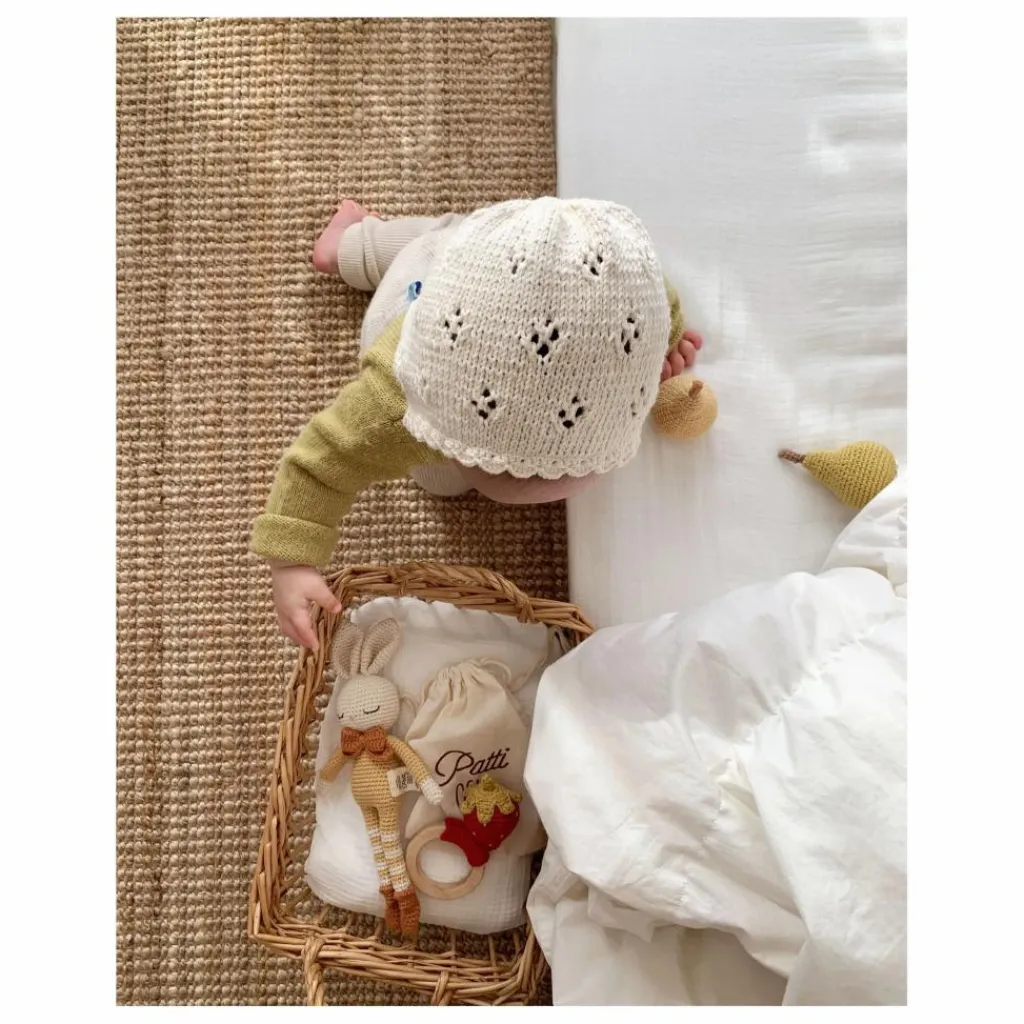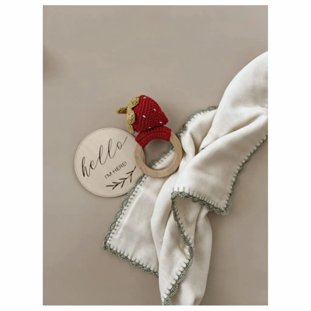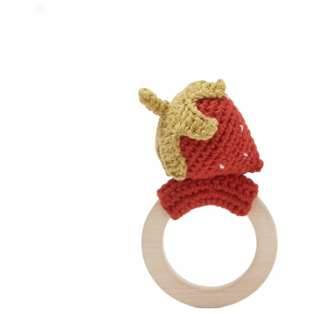 - L’anneau de dentition en forme de fraise soulagera les gencives douloureuses de votre bébé pendant la phase de dentition. Cet adorable jouet sera un compagnon idéal pour votre enfant ! Fabriqué avec soin à la main à partir de coton biologique certifié GOTS. Nos jouets crochetés sont fabriqués avec amour par des artisans talentueux qui utilisent des techniques traditionnelles. Chaque pièce est vraiment unique et porte l’individualité de l’artisan qui l’a fabriquée. Tous nos jouets sont sans danger pour les peaux sensibles. Conçu en Norvège Fabriqué à la main en Turquie – 100% coton biologique – Hypoallergénique et naturellement antibactérien – Teintures éco-responsables et non toxiques – Rembourrage : polyester recyclé (Global Recycling Standard) Conforme aux normes CE Convient dès la naissance Instructions de nettoyage Anneau en bois d’érable naturel. Nous recommandons de le nettoyer à la main avec de l’eau savonneuse. Ne pas utiliser de nettoyants abrasifs ou d’autres techniques de nettoyage et de stérilisation. Laisser sécher à l’air libre. Conserver dans un endroit propre, à l’abri de la lumière et de l’humidité.